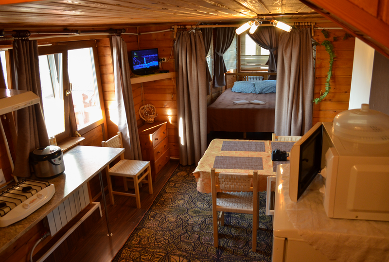 Домик. Чисто (идеально!) и всё есть. Постели (новые или почти новые), полотенца (чуть-чуть б/у, только начали служить), кухня оборудована полностью (новая плитка, чайник, вся посуда), сантехника работает, вода - и горячая тоже! – льётся, причём под хорошим напором. Нагреватель порадовал – горячая не заканчивалась. Холодильник с морозилкой - супер! Очень хорошо держит холод в +32С и всё умудряется в себя вместить. Готовили сами, в кафе только фермерскую вкуснятину покупали (цены, кстати, ниже самых адекватных).