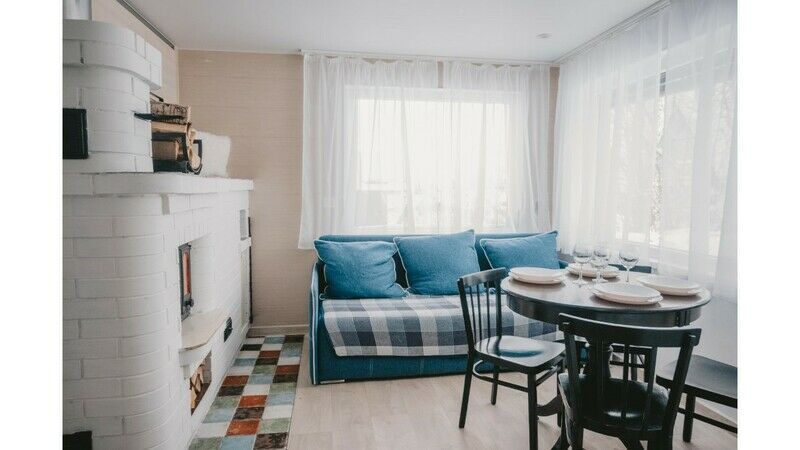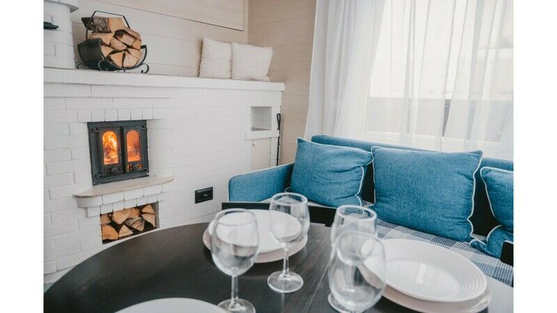 Одним из достоинства домика является камин-лежанка, где холодными зимними вечерами очень приятно проводить время.