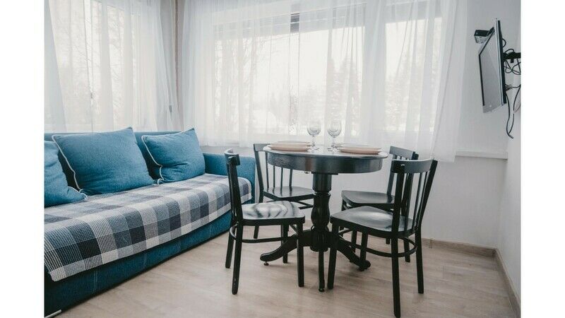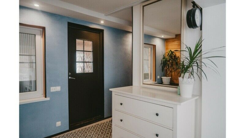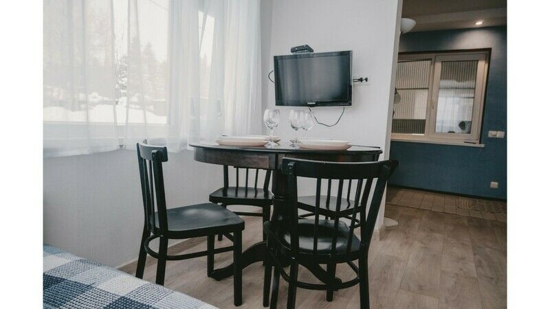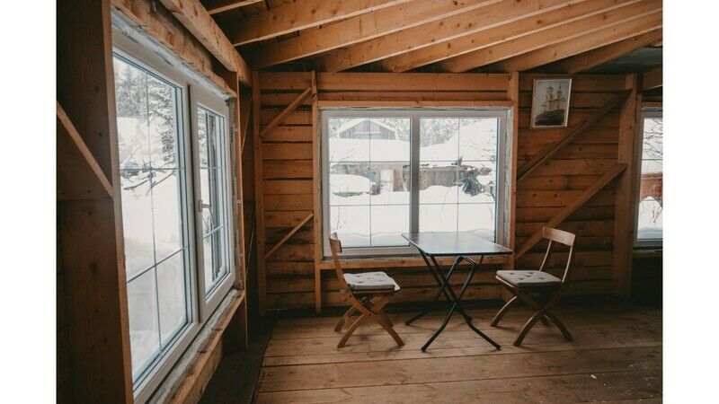 Домик имеет необычную архитектуру - две A-Frame крыши с выходом на террасу. На участке бьют ключи с чистейшей родниковой водой. Рядом расположен лес. Озеро в 1 км от дома.