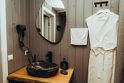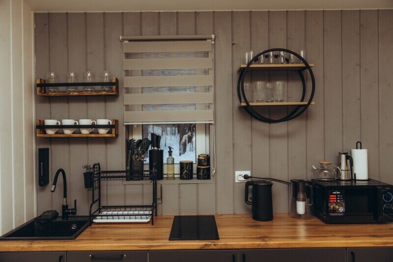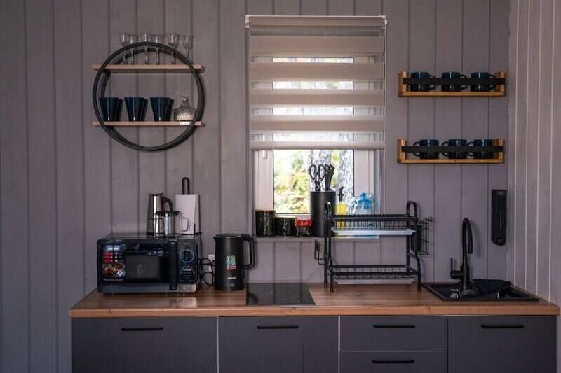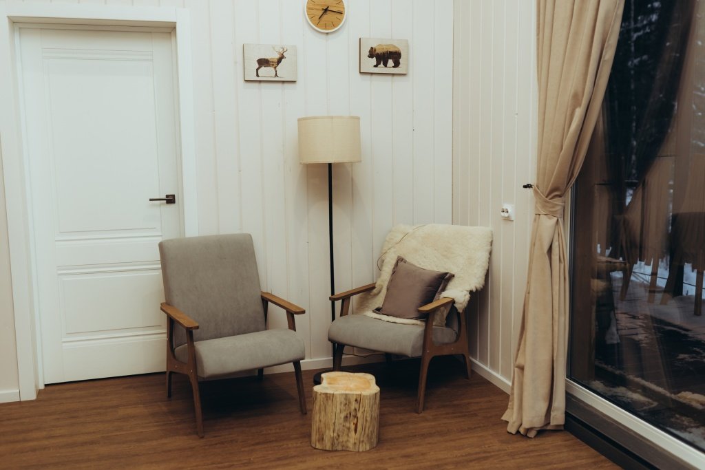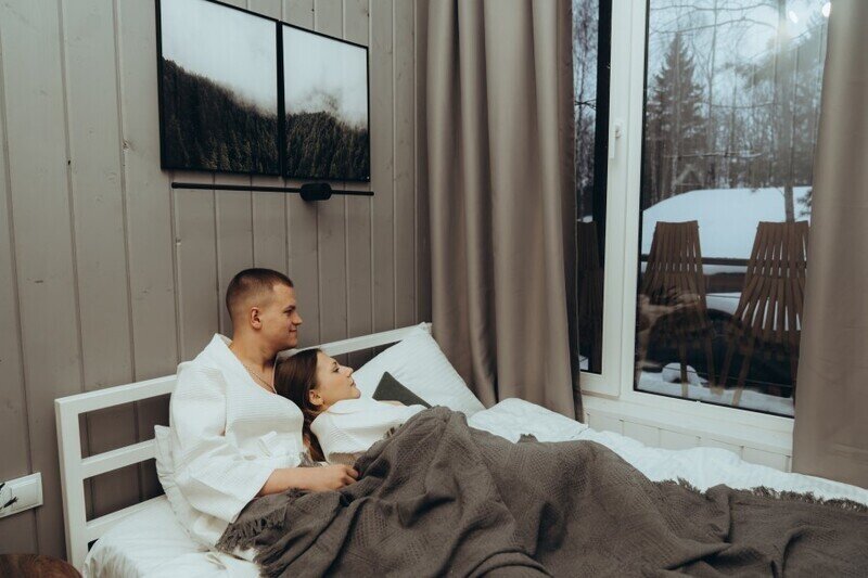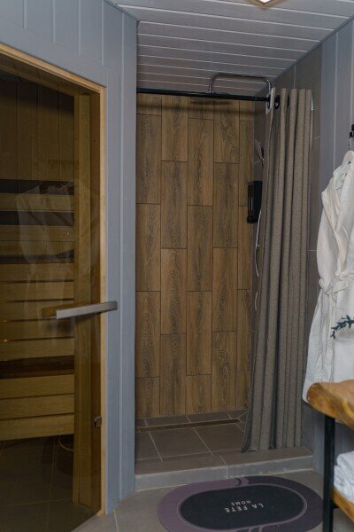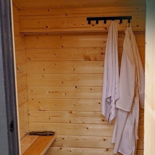 В каждом домике эко-отеля «Мох» имеется собственная электрическая сауна, предлагающая возможность расслабиться и согреться после прогулок по лесу.