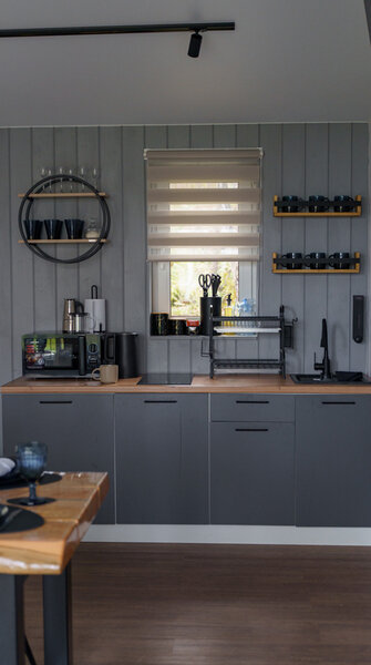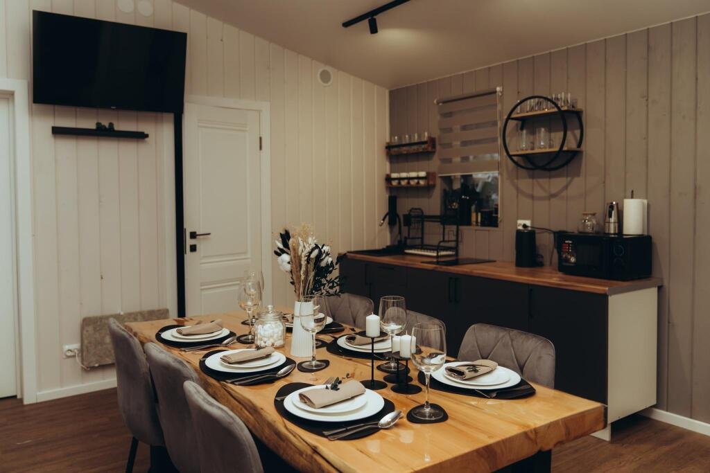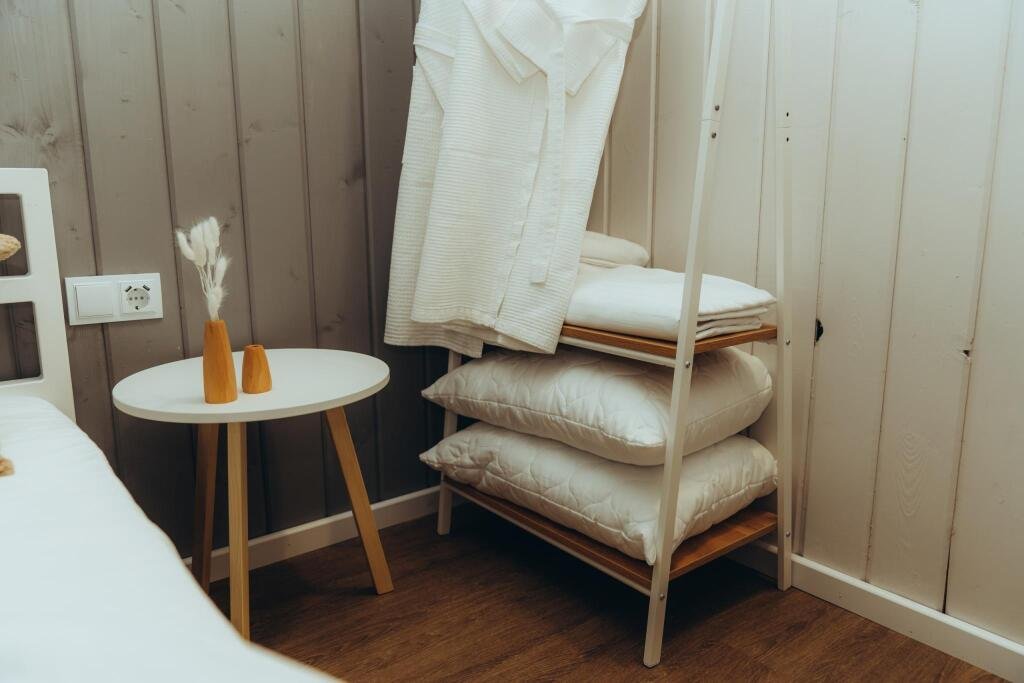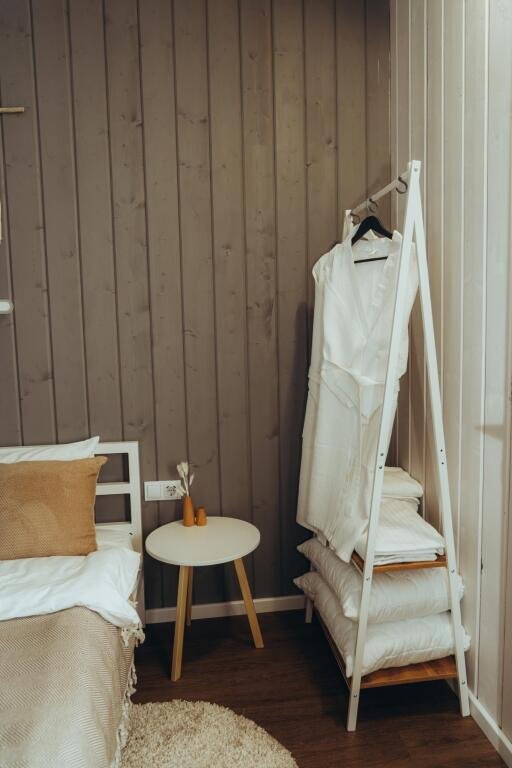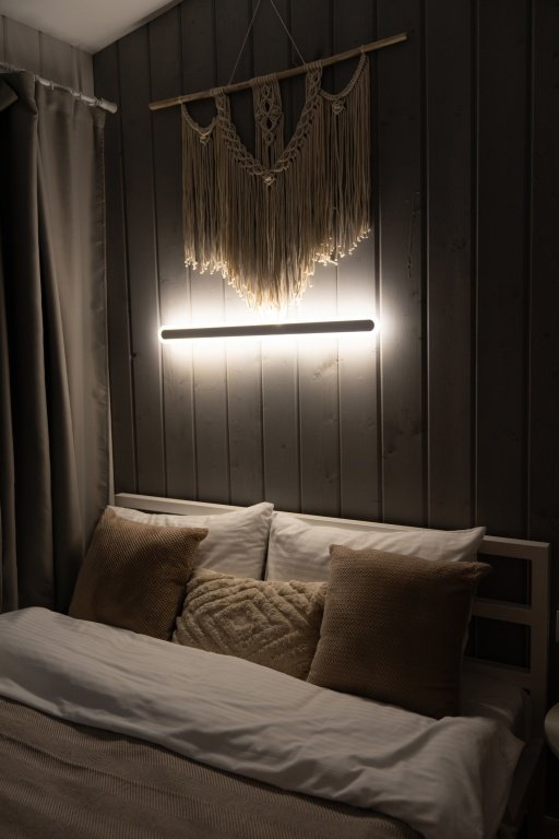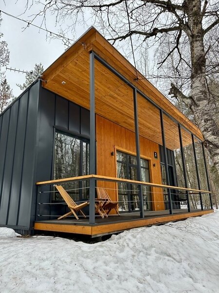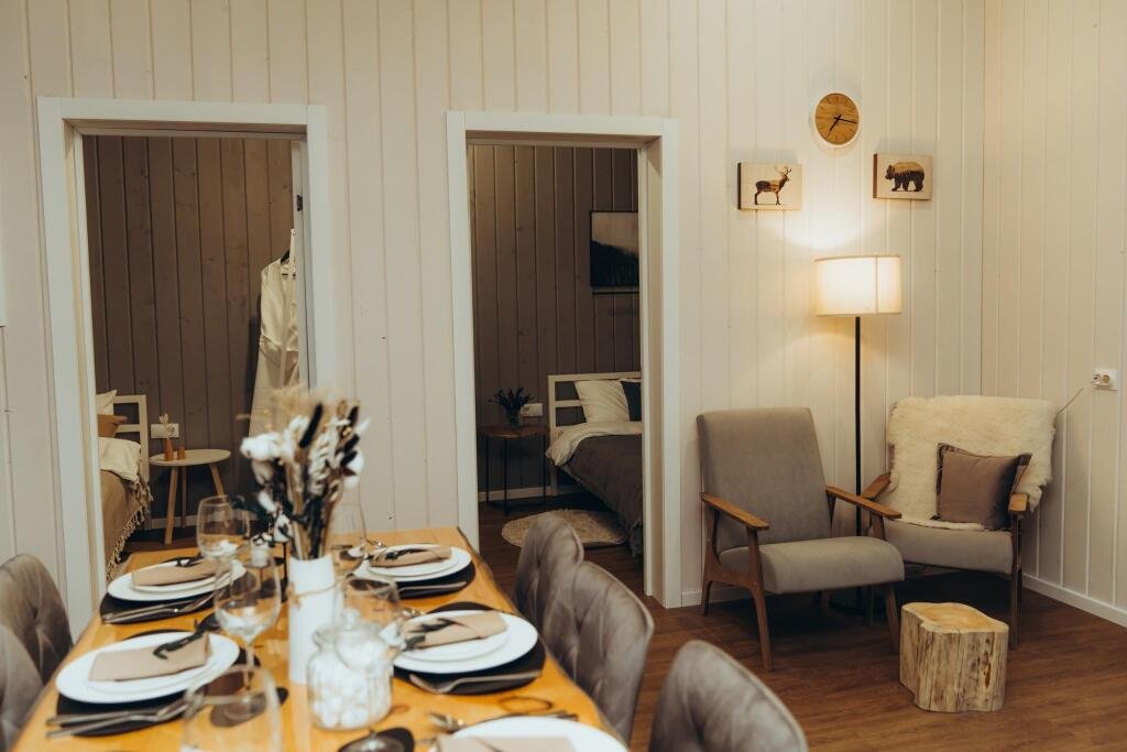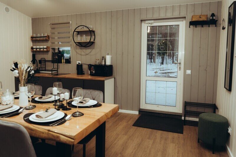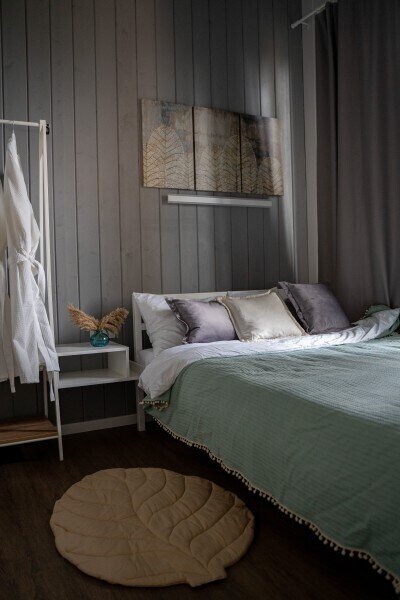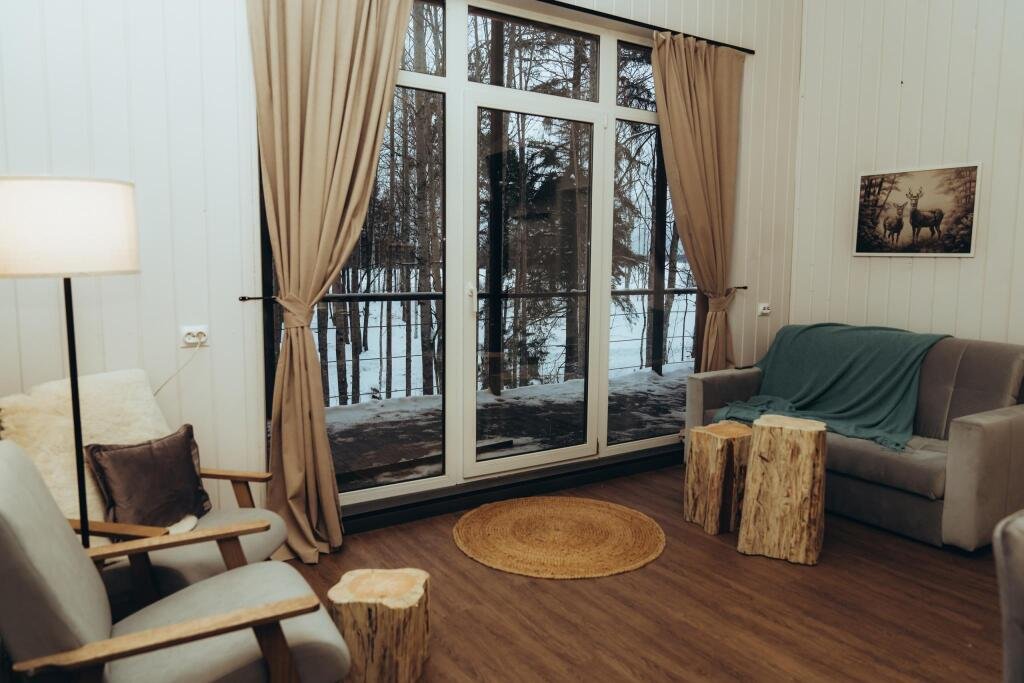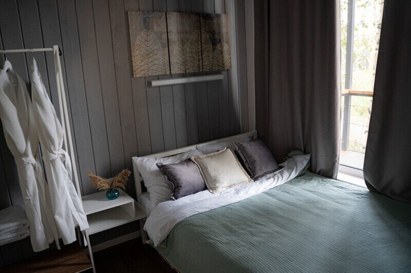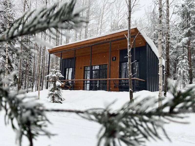 В отеле представлено 6 стильных комфортабельных домов с панорамными окнами и просторными террасами, открывающими вид на озеро. Каждый домик оборудован собственной электрической сауной.