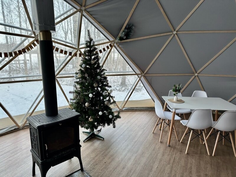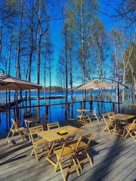 На территории также имеется кафе-шатер, где гости могут отдохнуть у камина и насладиться горячим кофе, а также арендовать его для проведения мероприятий. На берегу озера расположены два подогреваемых банных чана, обеспечивающие возможность расслабиться и насладиться природой в любое время года.
