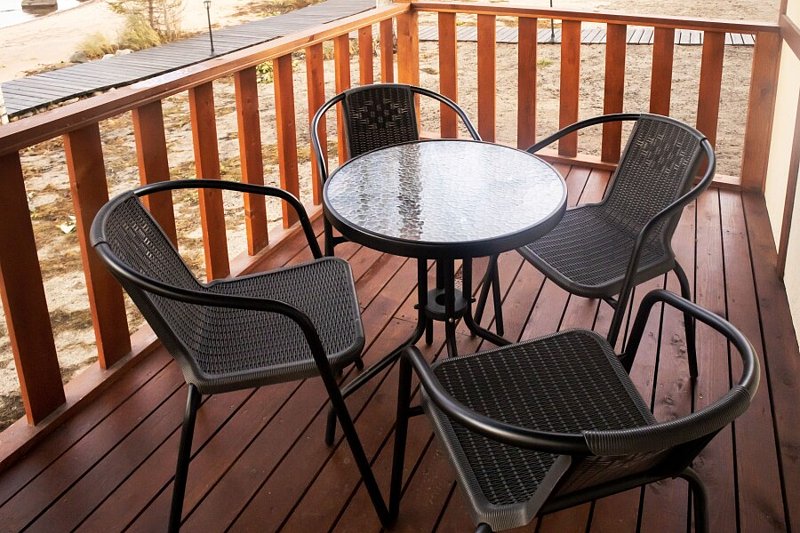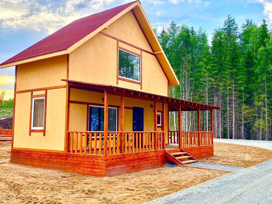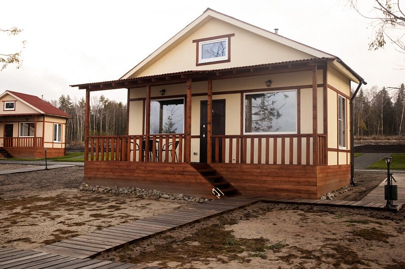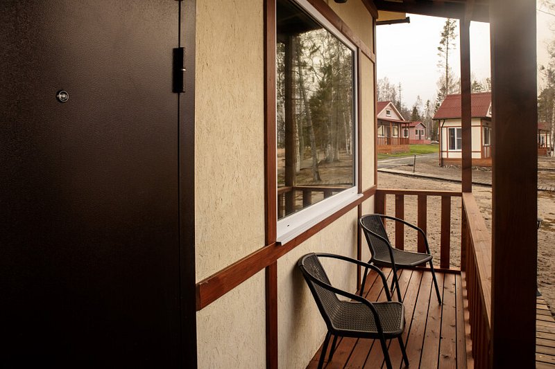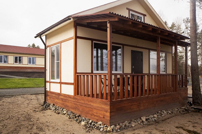 Номер «Комфорт» - двухкомнатный домик с крытой террасой - идеальный выбор для семьи или компании из 2–4 человек.