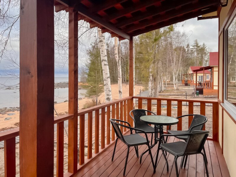 Из окон открывается великолепный вид на озеро, которое радует глаз в любую погоду. Атмосферу уюта дополняет просторная крытая веранда с мебелью, откуда можно наслаждаться вечерними закатами и звуками природы.
