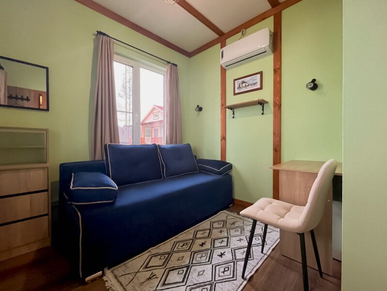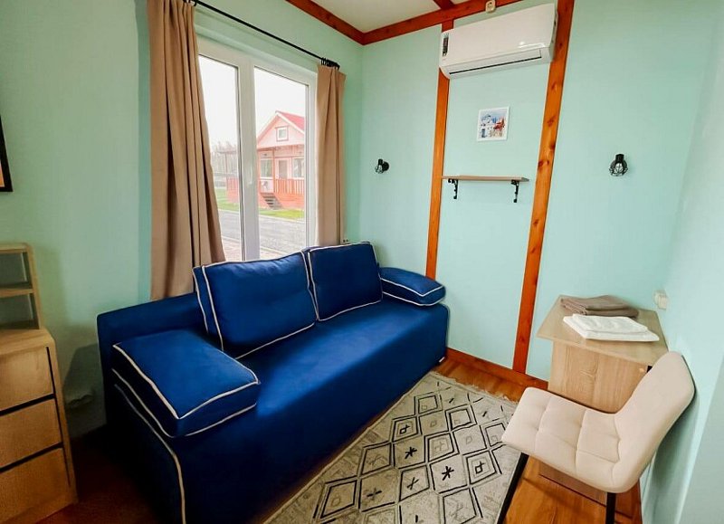 • Первый этаж: удобный двуспальный диван (150x200 см).