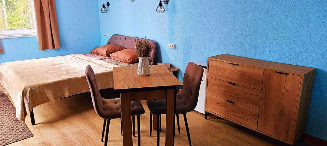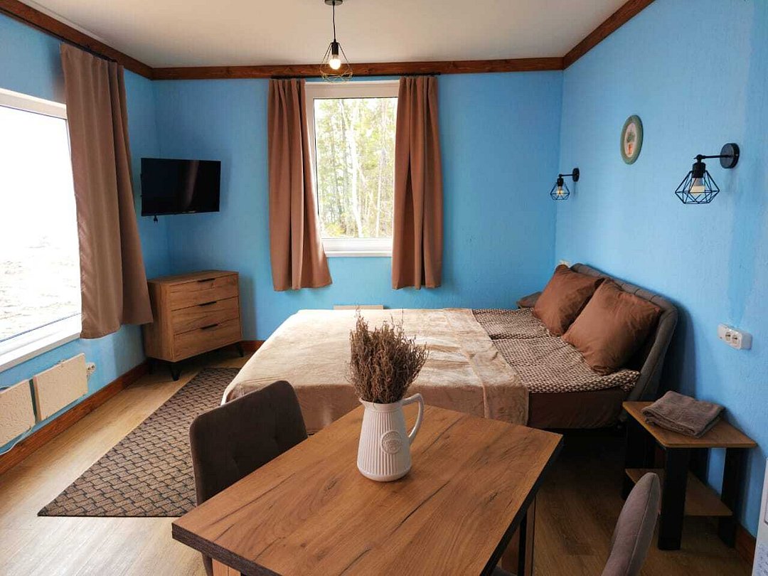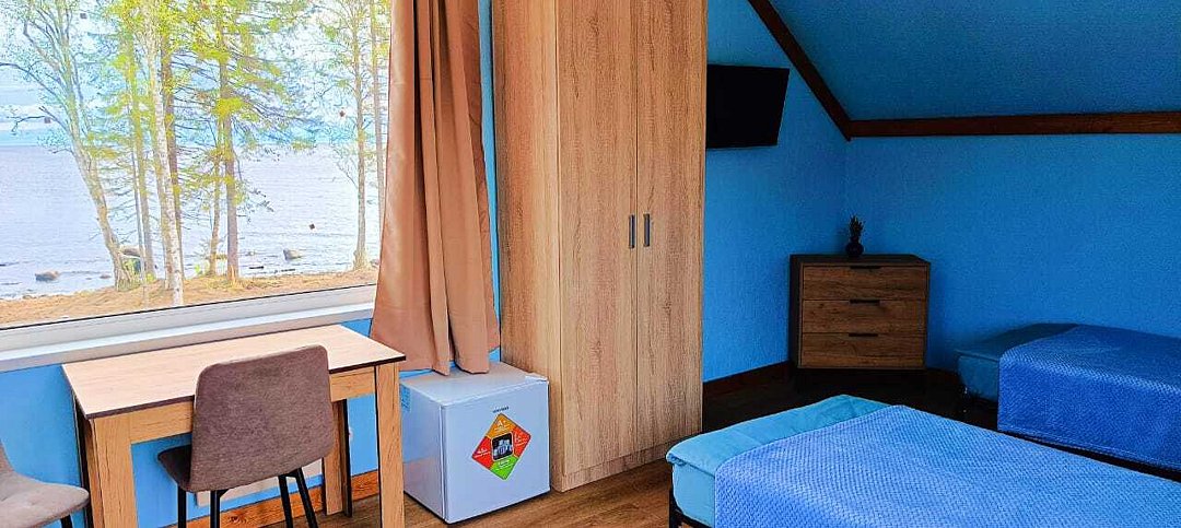 Номер "Дабл" - это одна комната в трехкомнатном домике. Уютный номер на первом этаже на берегу Онежского озера. Идеально подходит для размещения одного или двух человек. Из окон открываются живописные виды на озеро и карельскую природу.