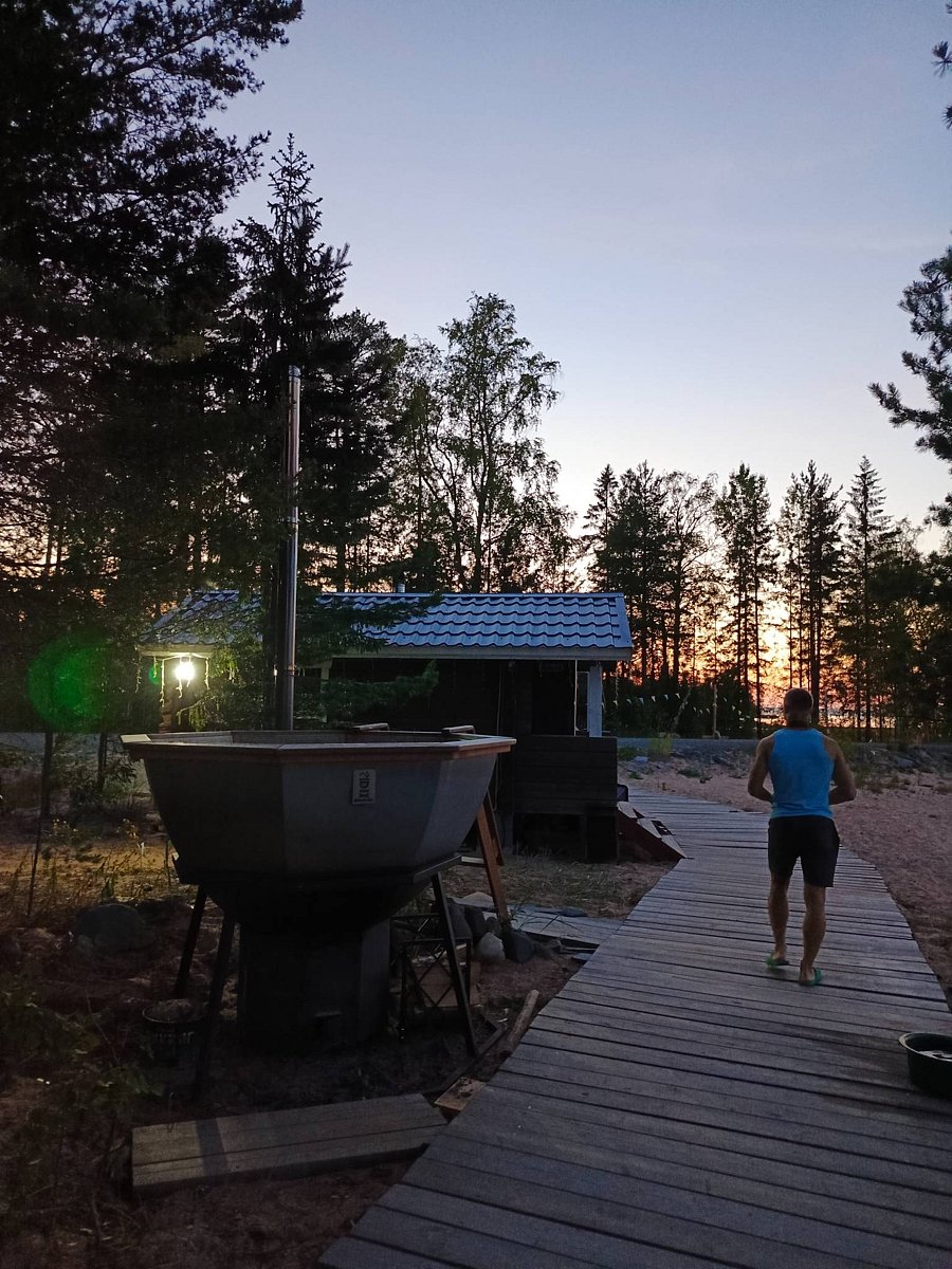 Небольшая, но уютная банька на дровах расположена у самой кромки крупнейшего озера Европы. Баня, сделанная в традиционном карельском стиле местными мастерами, несомненно подарит Вам не только новые ощущения, заряд бодрости и здоровья, но и эйфорию легкости и невесомости после принятия банных и водных процедур. После бани Вы сможете насладиться свежим бризом и ночным звездным небом, а если посчастливится, и волшебным северным сиянием.