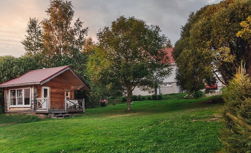 Семейный отдыхДостоинстваОчень-очень красиво. Для ребёнка раздолье: есть лужайка для игр, батуты, можно покупаться в озере, есть лодка для рыбалки и лодка для гребли.