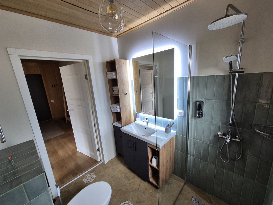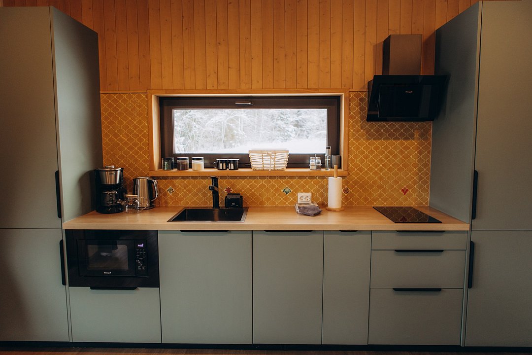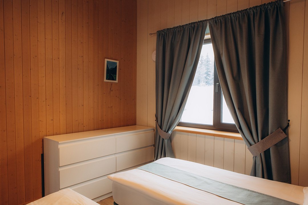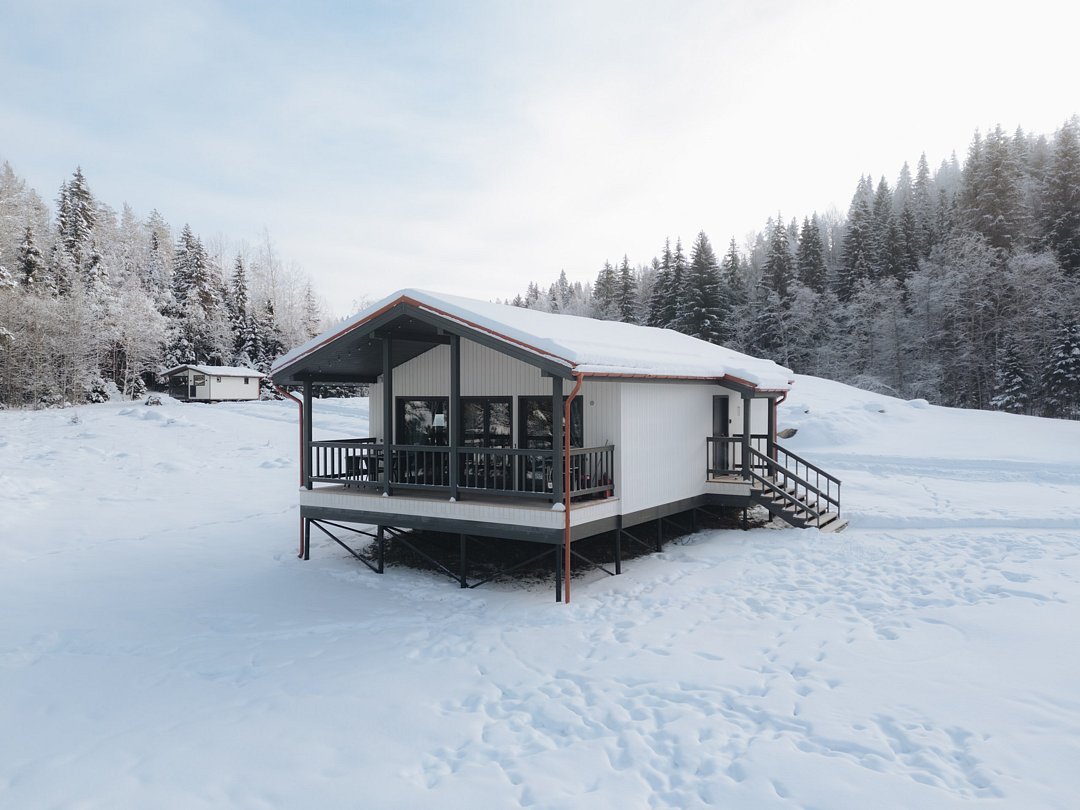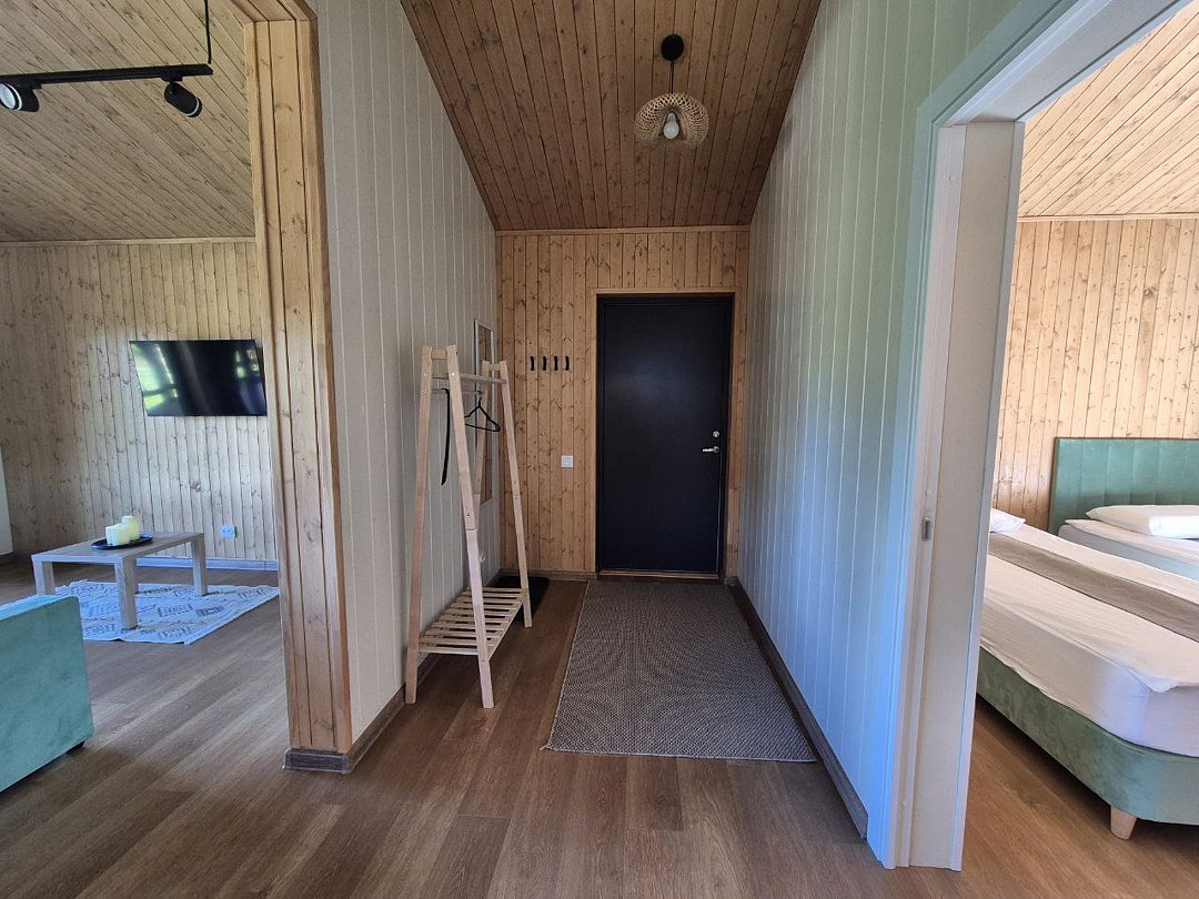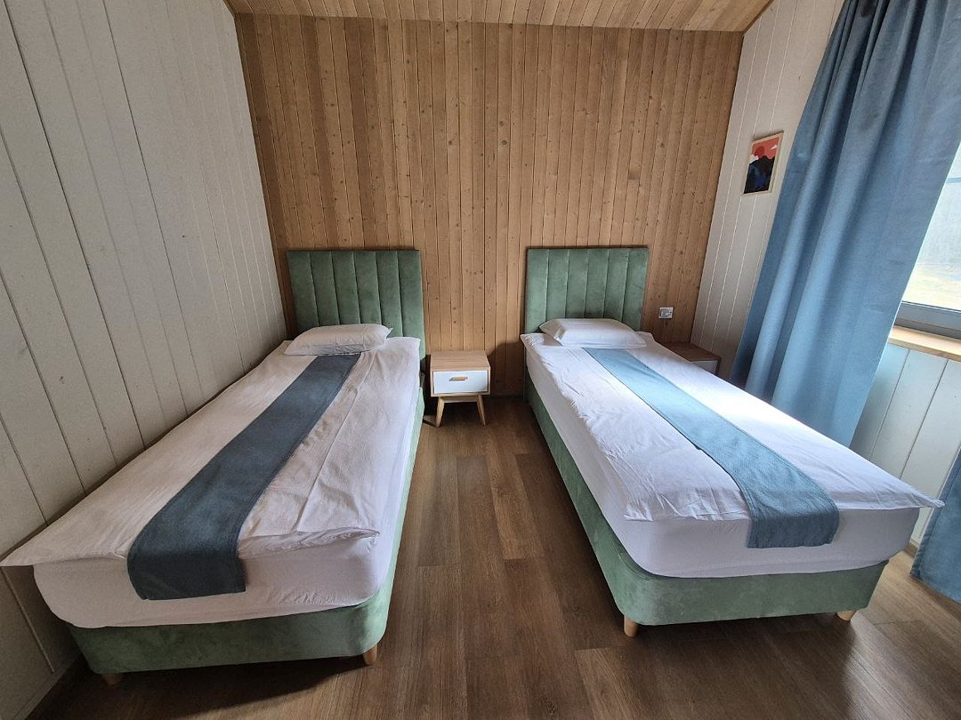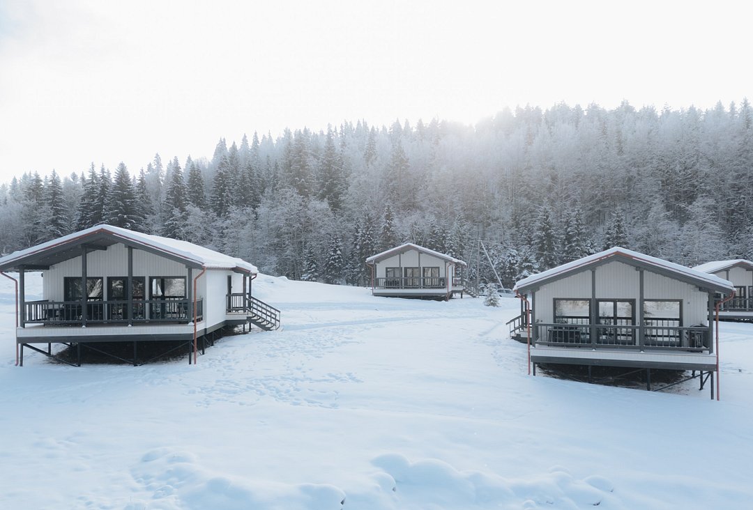 Для проживания гостей предлагаются новые дома с одинаковыми условиями, с панорамным видом на озеро и скалу. В домах максимально продуман комфорт, бытовая функциональность и удобство интерьера, чтобы ваш отдых проходил легко и непринужденно. В каждом доме имеются две спальни, ванная комната, просторная кухня-гостиная и терраса. В гостиной есть раскладной диван для дополнительных гостей. Современные удобства: кофемашина, холодильник, посудомоечная машина, а на террасе — газовый гриль для приятных вечеров.