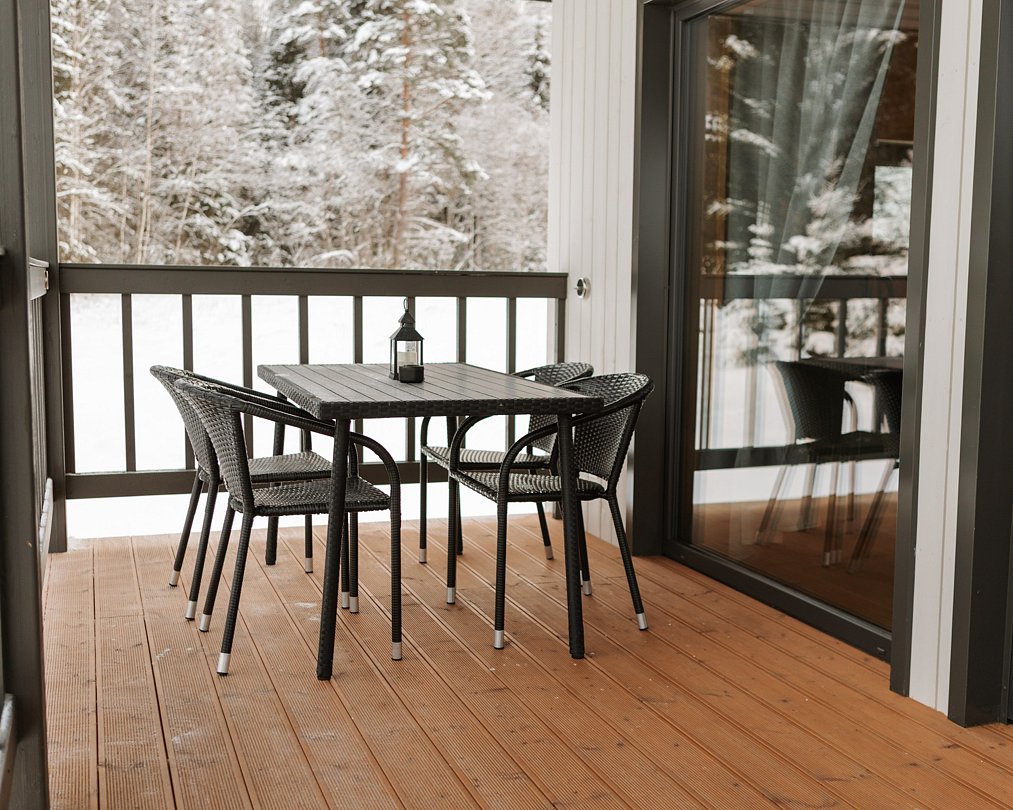 На террасе - газовый гриль и оборудованное место для уютных вечеров.