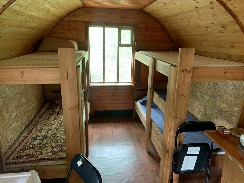 Здесь можно остановиться в недорогом 4-х местном домике с двухярусными кроватями и мини-кухней.