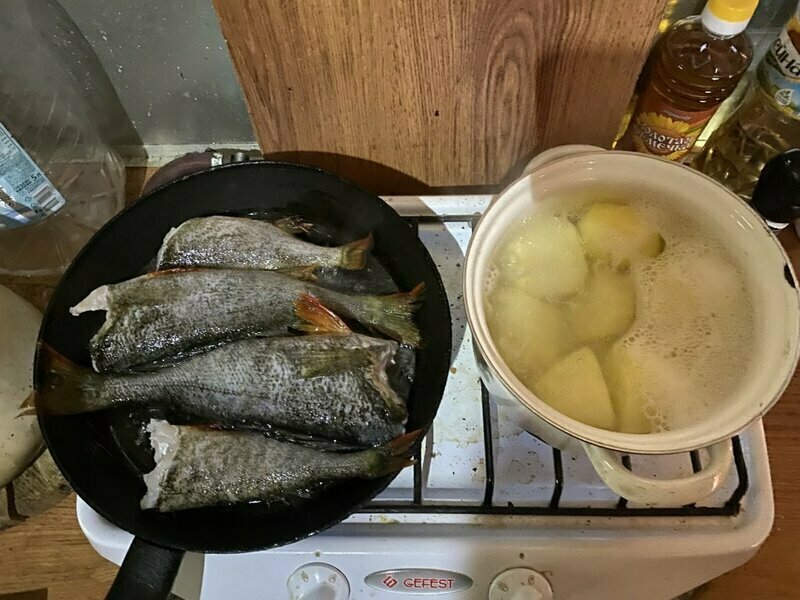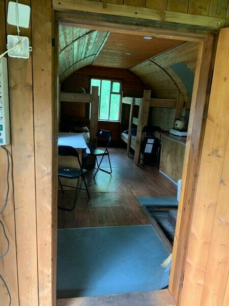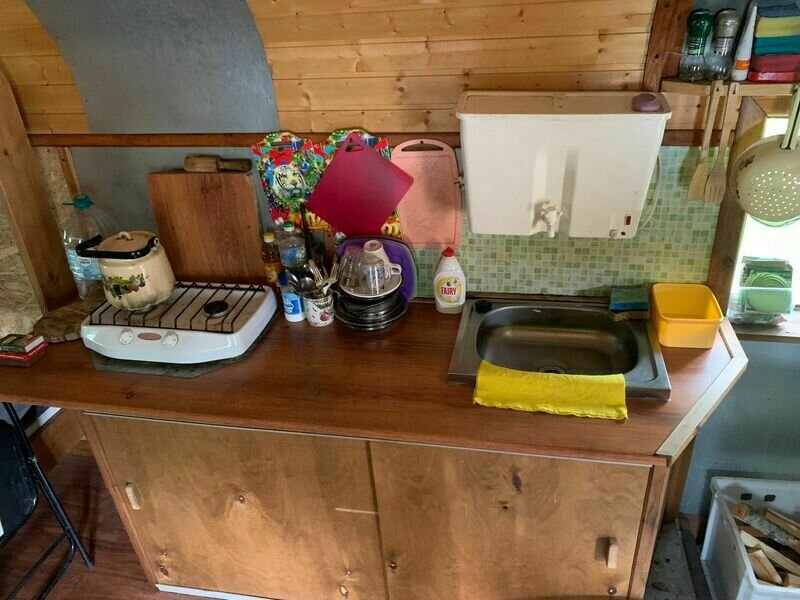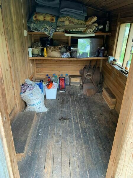 Небольшой рыбацкий домик, отапливается печкой. В домике: 2 двухъярусные кровати, стол, стулья, мини-кухня, плита, чайник, набор посуды. Удобства на улице