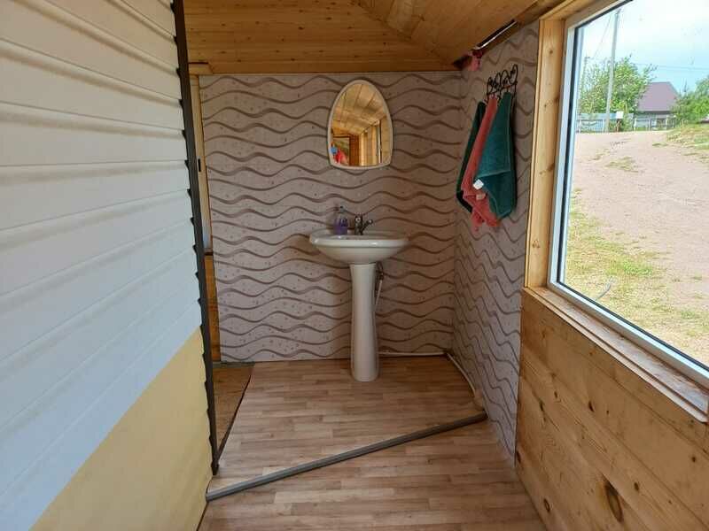 Гости, которые проживают в бунгало пользуются душем в бане. Баня и бунгало находятся в одном здании, но имеют разные входы.