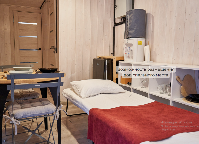 На территории расположен красивый шатёр, подходящий для любых мероприятий, начиная от корпоративных тренингов и заканчивая йога-ретритами. Также есть уютная баня, где вы сможете полностью расслабиться и восстановить свою энергию. Для любителей активного отдыха предлагается аренда велосипеда, лодки, квадроцикла, SUP-доски. На территории есть удобная автостоянка для гостей, прибывающих на автомобиле.