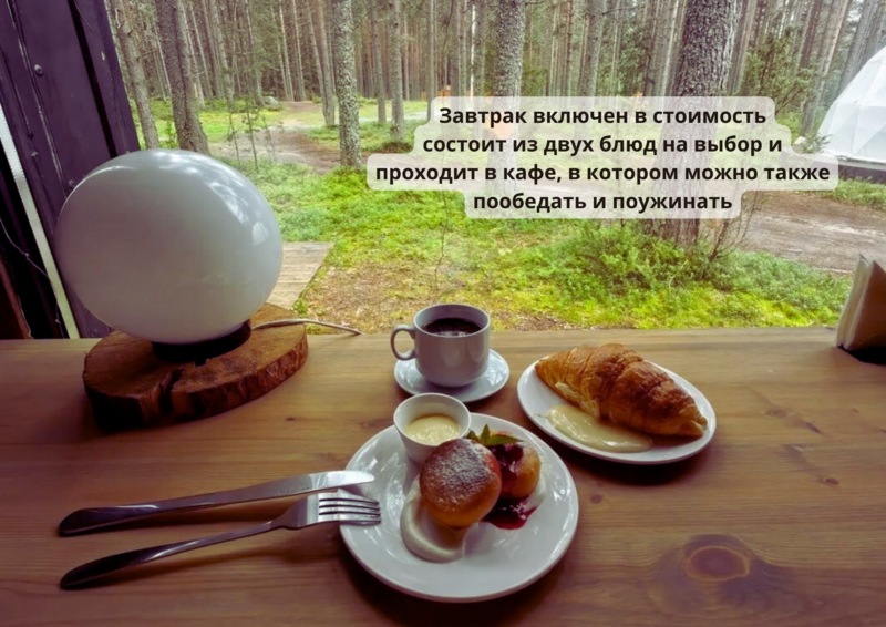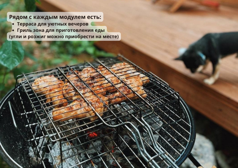 Завтрак уже включен в стоимость проживания, а также предоставляется возможность заказать обед и ужин. В каждом домике есть гриль, на котором вы сможете приготовить любимые блюда на открытом огне.
