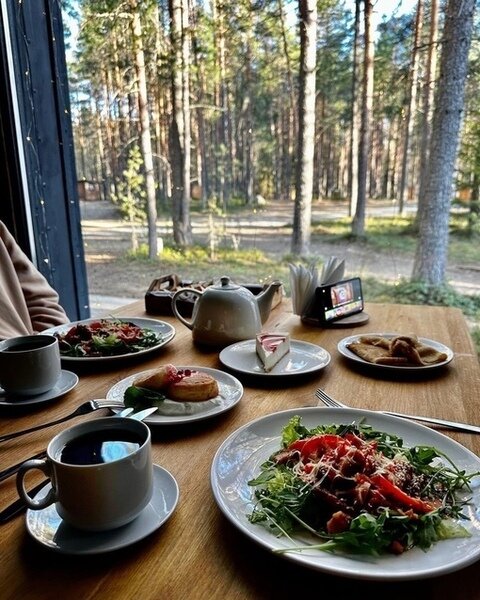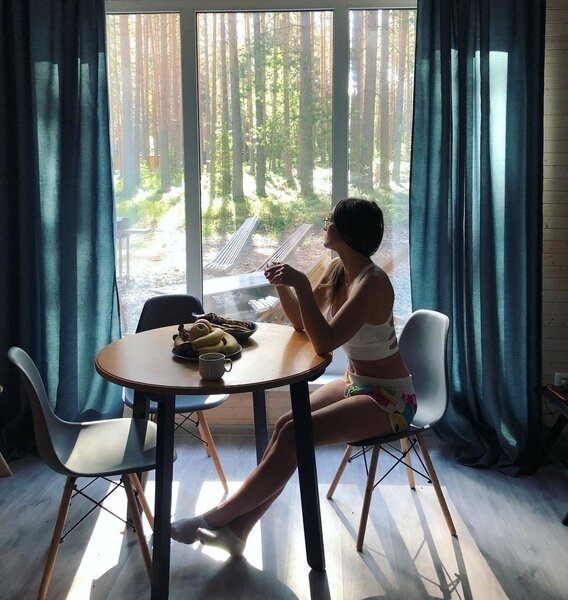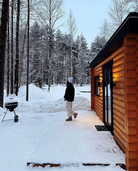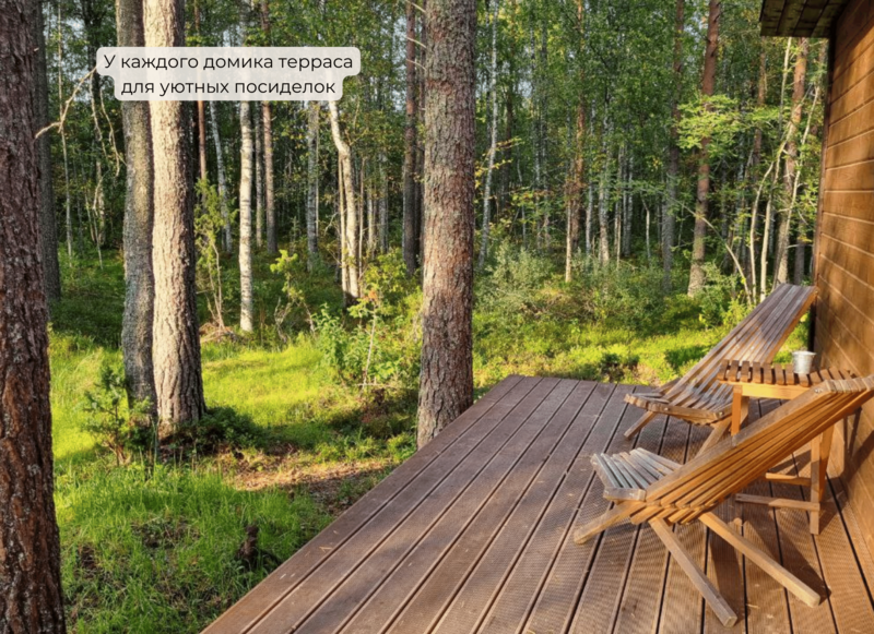 Семейный отдыхДостоинстваЗамечательный эко - отель! Расположен в лесу, чистый воздух, а черники кругом видимо - невидимо. Я насобирала за два дня 5 литров. Домик на двоих уютный, комфортный, чистый, всё, что нужно в нём есть. Персонал очень вежливый, завтраки вкусные, небольшое разнообразие, но нам на пять дней было вполне достаточно. Погода стояла тёплая, озеро рядом, пляж песчаный, накупались и назагорались. А вечером очень приятно посидеть с шашлычком на террасе, есть пледы, около каждого домика мангал. Очень понравилось, что окна в доме смотрят в лес и , что в отеле режим тишины. Огромное спасибо за чудесный отдых! Всем рекомендую данный отель!