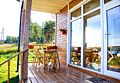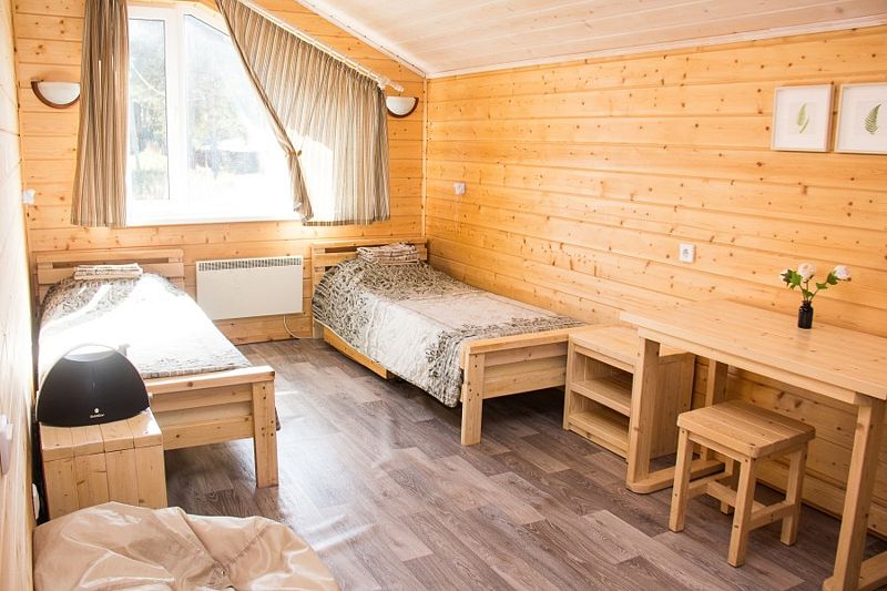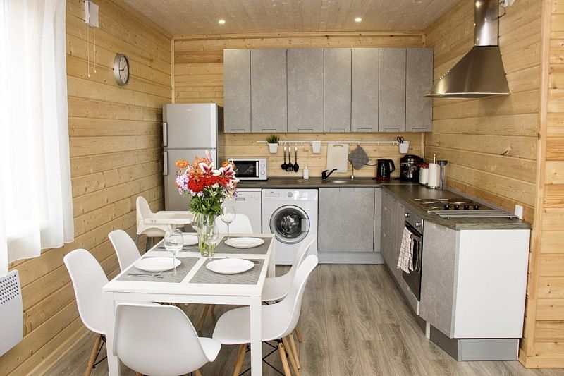Коттеджи расположены на полуострове. В них вас ждут уютные спальни, современная кухня, в которой имеется стиральная и посудомоечная машины, плита, духовка, микроволновка, блендер, кофеварка, а также посуда и детский стульчик. Все дома оснащены собственной ванной комнатой с теплыми полами. Также в вашем распоряжении телевизор со спутниковым тв, бесплатный Wi-Fi и настольные игры.