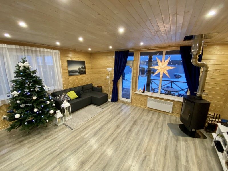 Коттедж расположен на полуострове, рассчитан на 6+2 человек 120 м2 (1 этаж, 3 спальни). Дом постройки 2019 года. К услугам его гостей баня на берегу озера по договорённости, парковка.