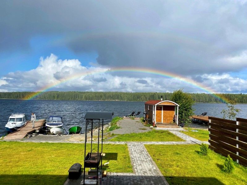 Красивый вид с окон коттеджа на онежское озеро. Территория обработана от клещей, комаров, змей!