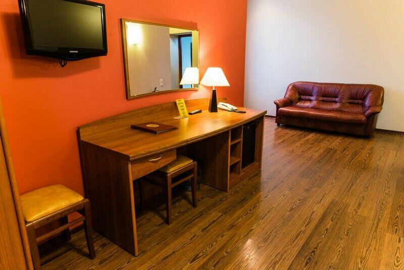 В этом уютном номере гармонично сочетаются функциональность и комфорт. В интерьере преобладают теплые тона, создающие атмосферу уюта и релаксации. Светлое пространство обогащает помещение естественным светом, подчеркивая стильный деревянный пол. Спальная зона оснащена большой удобной кроватью с покрывалом, оформленным в этническом стиле. Рабочая зона представлена просторным письменным столом с настольной лампой и зеркалом, что удобно для работы или подготовки к важным событиям. Рядом расположился комфортабельный кожаный диван, идеально подходящий для отдыха. Ванная комната оборудована современной сантехникой и выполнена в нейтральных оттенках, предлагая все необходимое для полноценного отдыха. На фотографиях представлены не все номера данной категории.Услуги и удобства