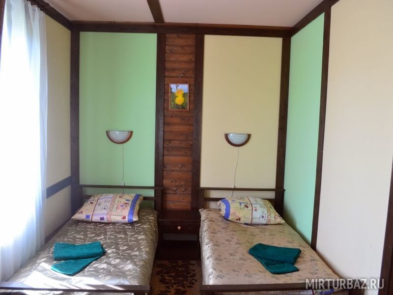 Двухместный номер комплекса является отличным вариантом для комфортного проживание по привлекательной цене. Прихожая, 2 полутораспальные кровати, мягкая тахта, телевизор, место для хранения одежды, комод, стол и стулья. В каждом коттедже просторный санузел, душевая кабина.