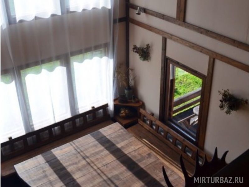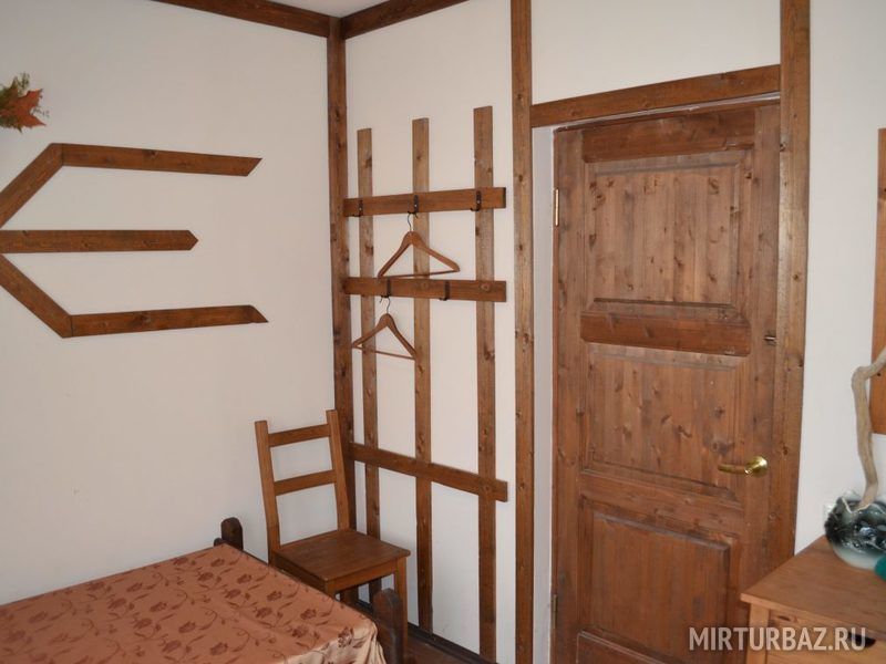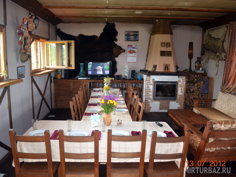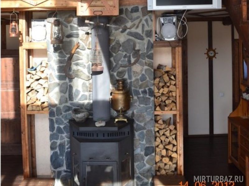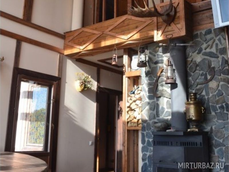 В доме имеются 1,5-спальные кровати, прикроватные тумбочки, комод. Камин, большой общий стол на 12 человек, скамьи, стулья, камин, ЖК телевизор, музыкальный центр, DVD, караоке, большой холодильник и буфет с посудой, электрический чайник. Из зала открывается потрясающий вид на карельские зори и закаты.