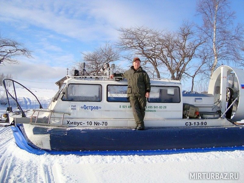 10-ти местное судно на воздушной подушке «Хивус — 10» — безопасное средство передвижения по льду и воде!. Принимаются заявки на прогулки от туристов и рыбаков для перемещения в рыбачьи места.