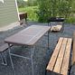 Рядом деревянная беседка со столом и скамьями, мангал с решеткой и шампурами, казан, барбекю, коптильня.Баня
