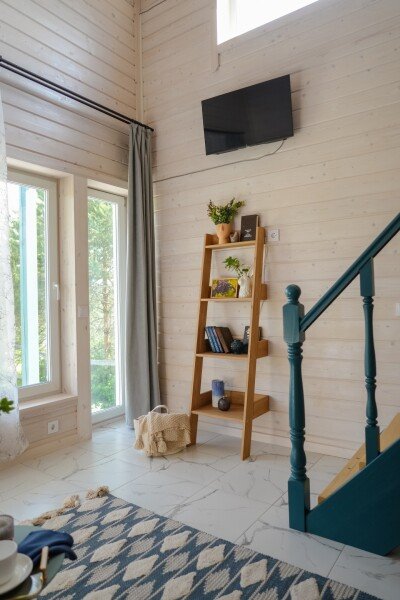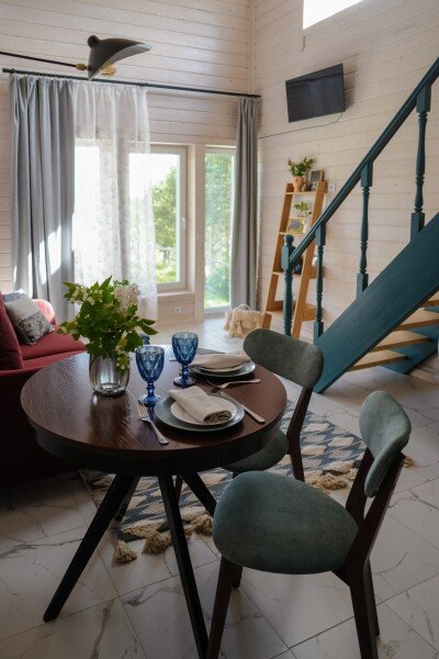 Проживание в таунхаусе, состоящем из шести номеров. Все номера двухуровневые, двухместные. Каждый номер с отдельным входом-выходом на улицу, имеет свою террасу с мебелью. Расстояние до озера 150 метров.