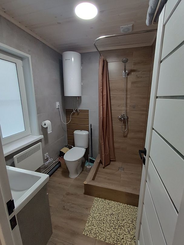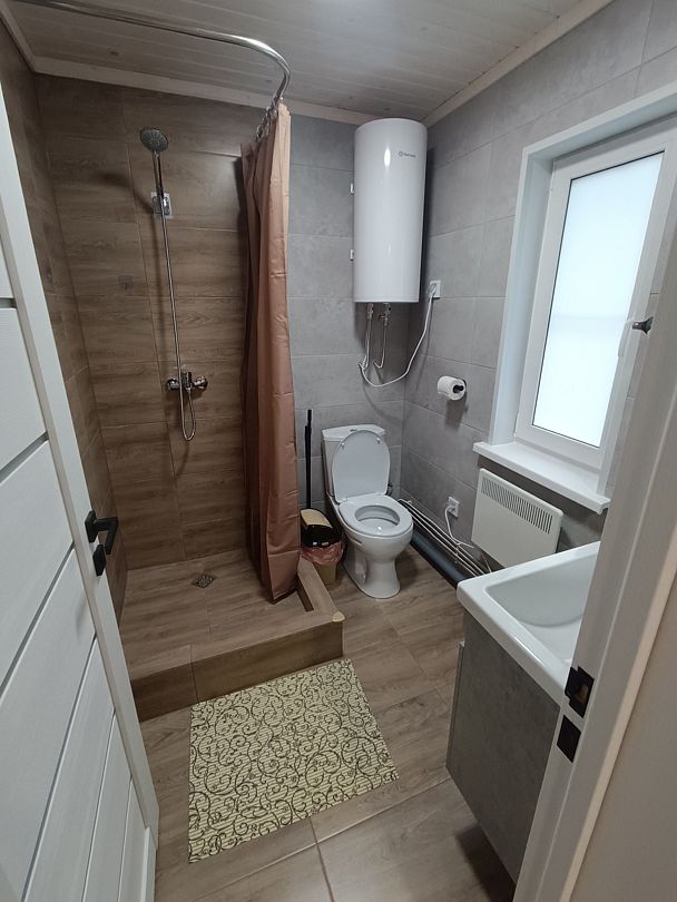 B доме 2 отдельных входа. Каждая часть дома, 45 кв.м., полностью изолирована друг от друга. Цена указана за одну часть дома - 45 кв.м.