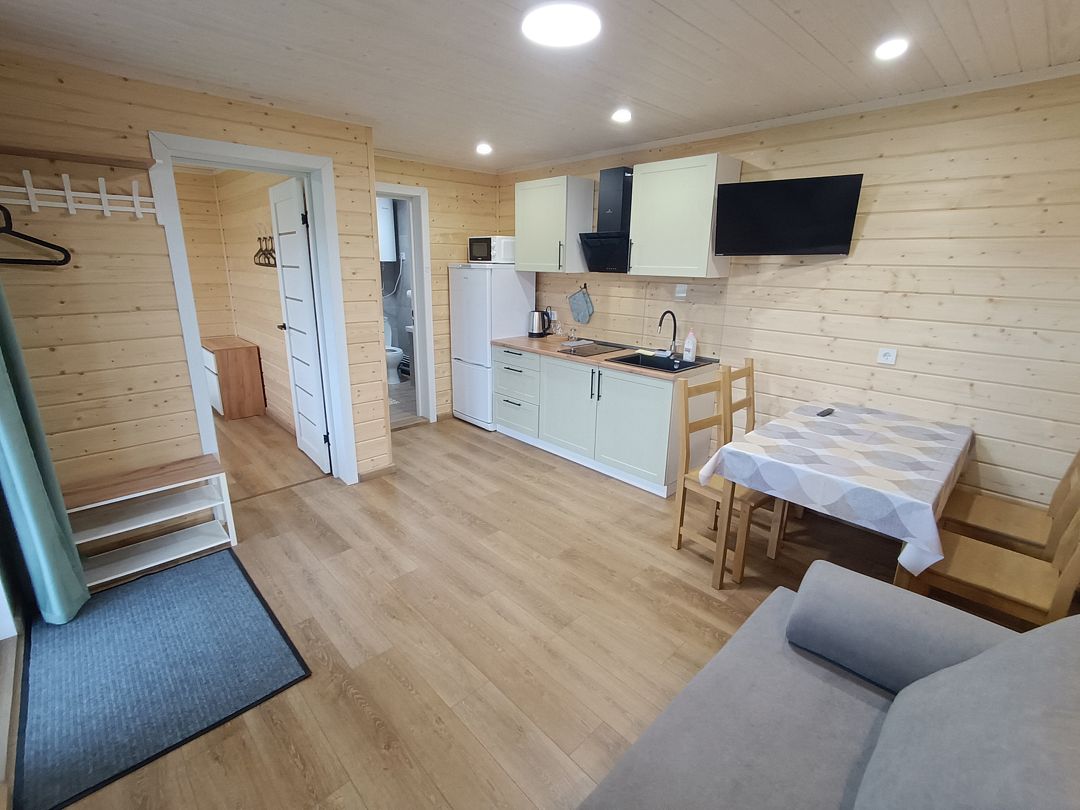 Уютный, теплый дом на берегу с двумя спальнями, санузлом и кухней.