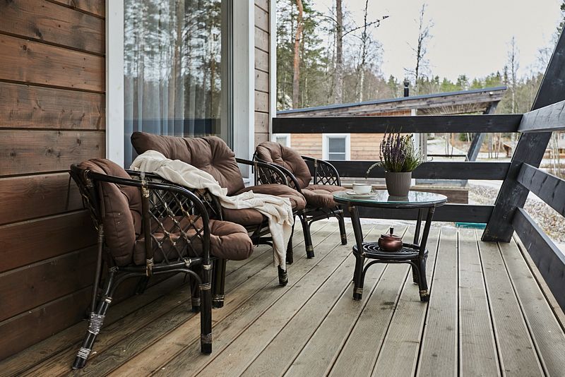 Уютный коттедж с двумя спальнями, большой гостиной, камином, террасой и сауной. Здесь есть все для комфортного проживания семьи или компании друзей до 6 человек.
