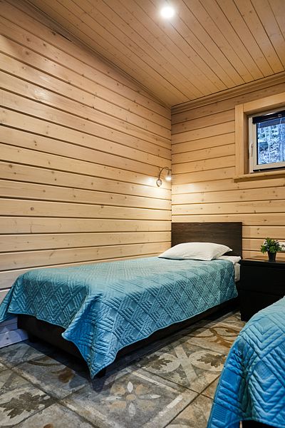 Уютный коттедж с двумя спальнями, большой гостиной, камином, террасой и сауной (за доп. плату). Здесь есть все для комфортного проживания семьи или компании друзей до 6 человек.