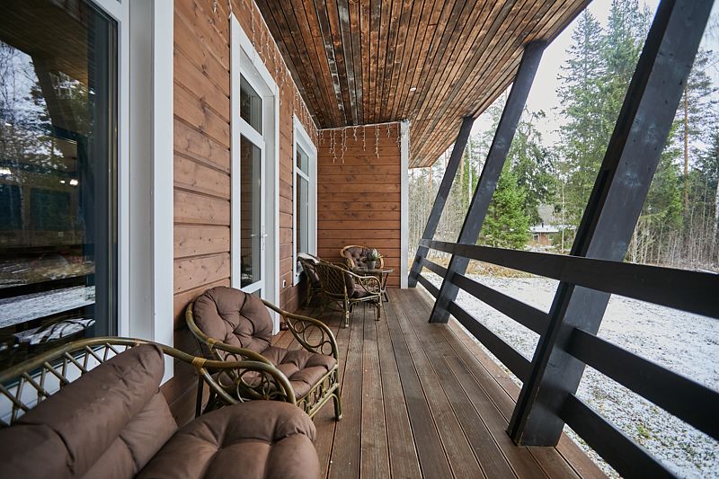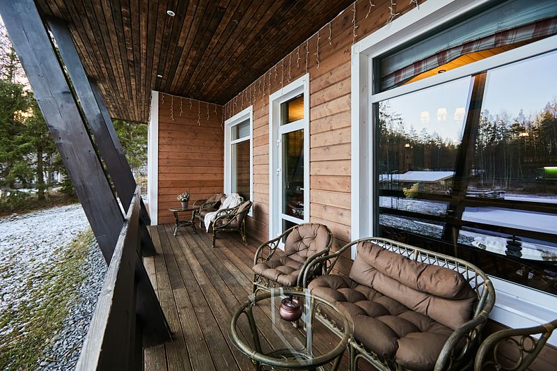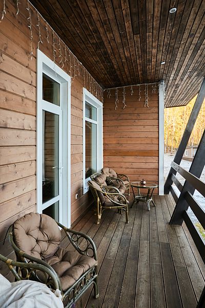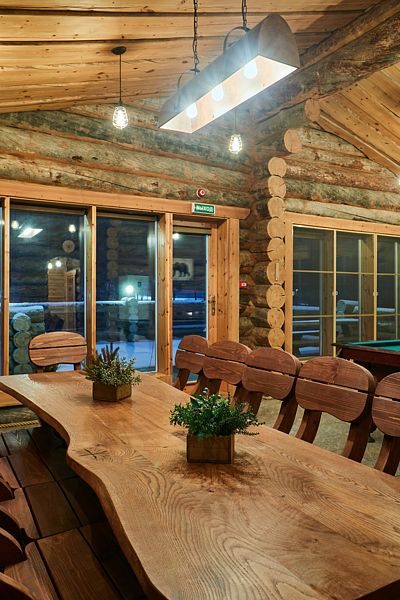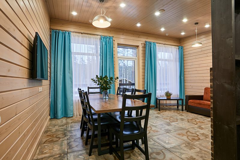 Для любителей традиционных оздоровительных процедур на территории отеля имеется настоящая русская баня из уникального сухостоя Кело. Здесь можно не только попариться, но и снять напряжение.