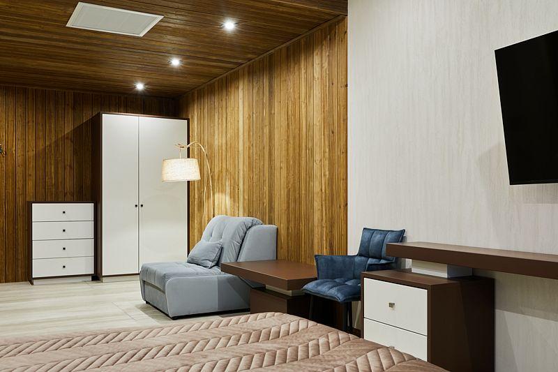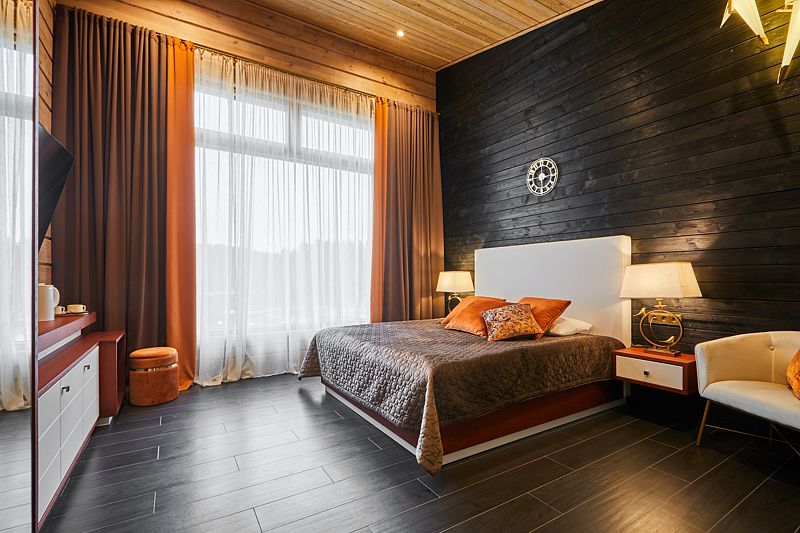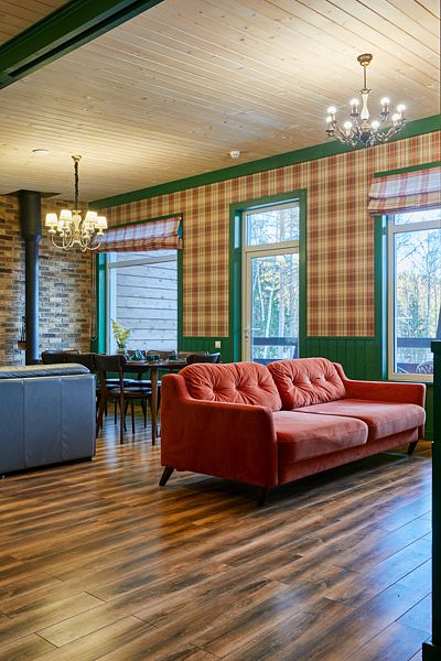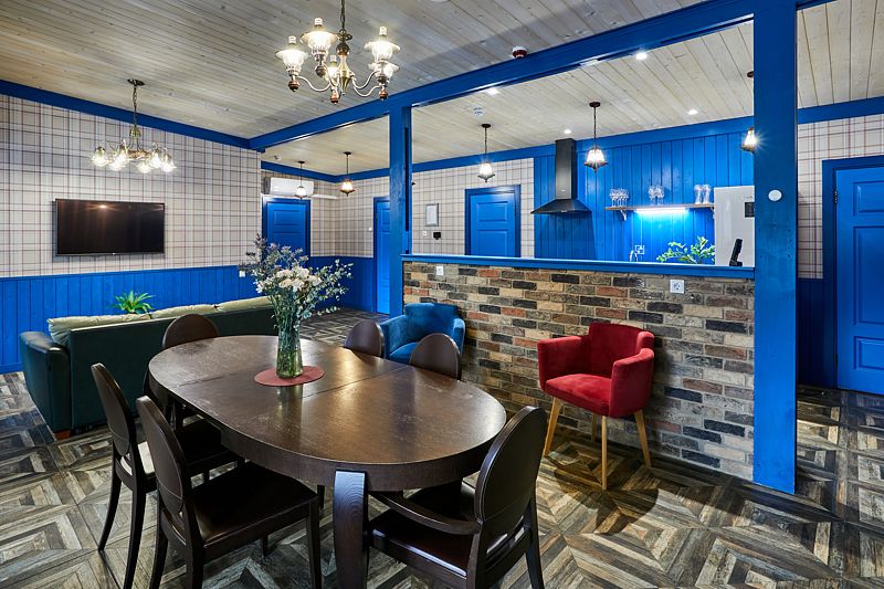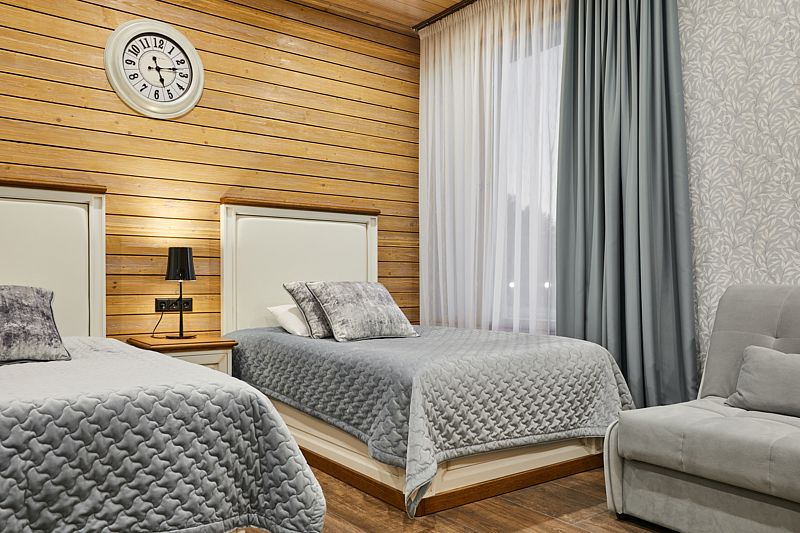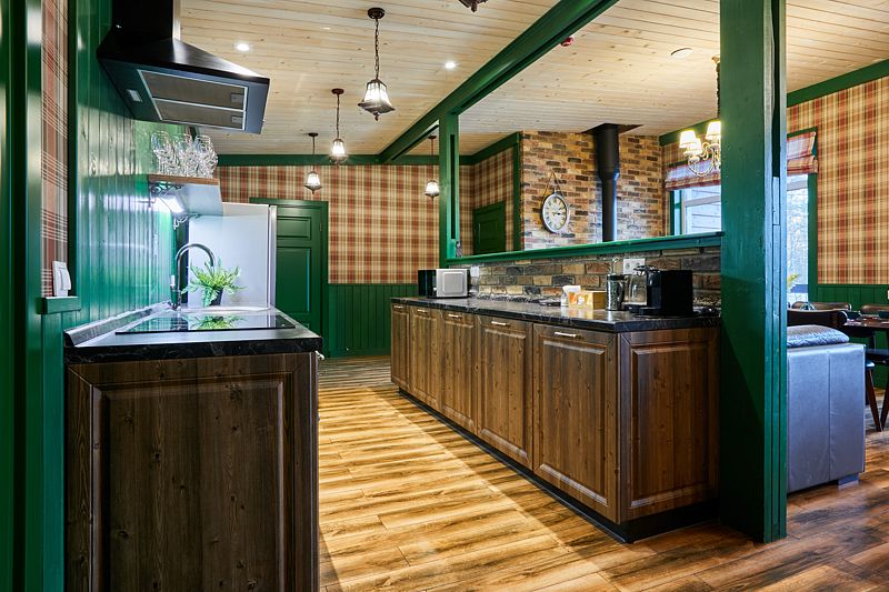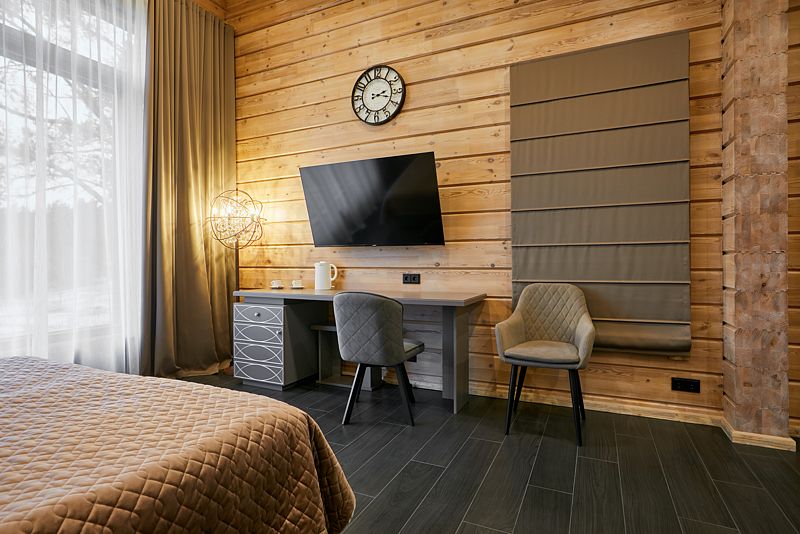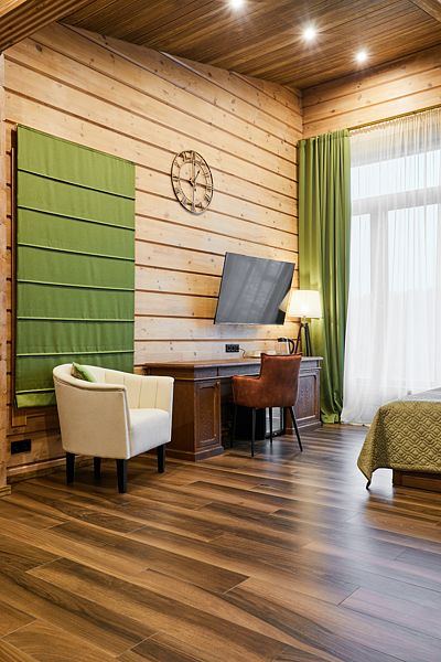 На территории отеля расположились комфортабельные номера в изысканном европейском стиле, вместительные коттеджи для 2–10 человек и просторные дома с английским интерьером для больших компаний до 12 человек.