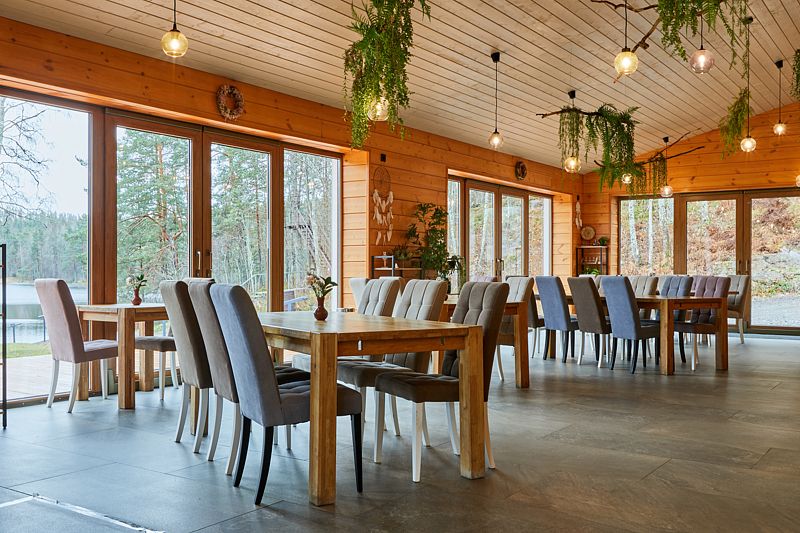 Ресторан «Иван чай» привлекает гостей изысканным меню и панорамными окнами, из которых открывается завораживающий вид на Ладогу. Здесь можно насладиться завтраком, обедом или ужином в теплой компании.