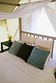 Просторная двуспальная кровать, сделанная на заказ талантливым столяром, закрывается воздушным тюлем, создавая зонирование между кроватью и диваном. Маленький раскладывающийся диван находится в изножье кровати. Оба спальных места оборудованы специальной простыней с подогревом, которая регулируется с каждой половины кровати. Подогрев не даст вам замерзнуть даже в том случае, если вы решили не включать тепловую пушку.
