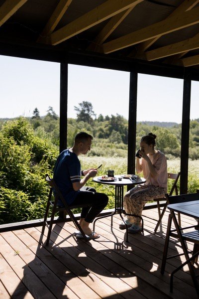 В распоряжении гостей на территории площадка для барбекю, костровая зона и горячий банный чан с ароматными травами под открытым небом. Чтобы разнообразить отдых, можно посетить красивейшие места, расположенные недалеко от глэмпинга — Долина водопадов, Ладожские шхеры, Карельский зоопарк, Рускеала.