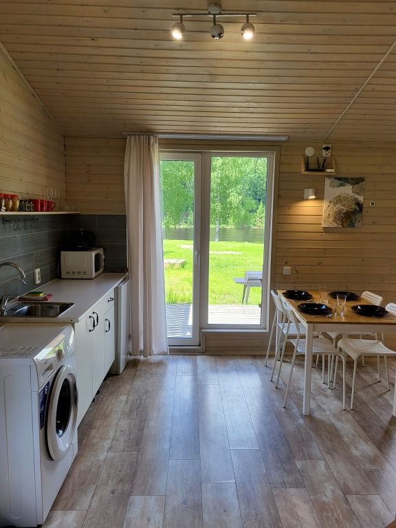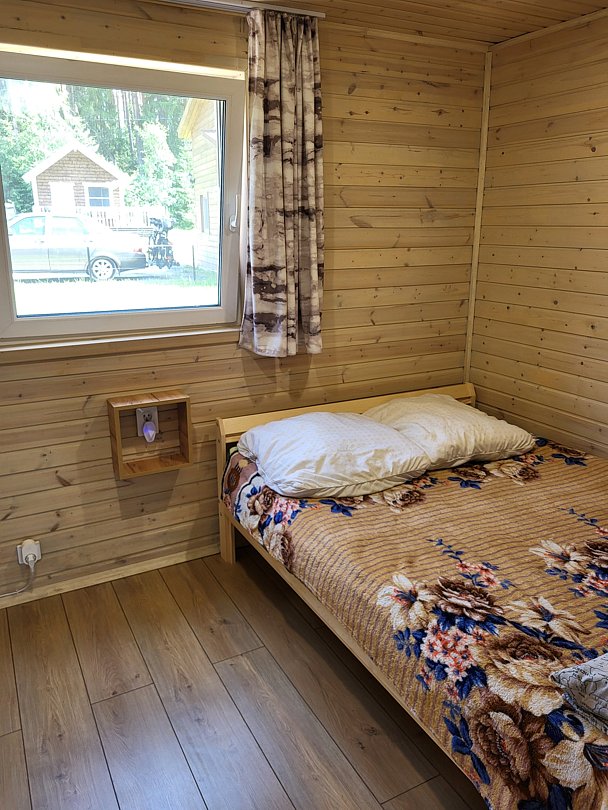 Один домик рассчитан на четырех человек. Собственные сауна, санузел, печь-камин, терраса. Есть все необходимое для отличного отдыха: оборудованная кухня (холодильник, чайник, электроплитка, мини-духовка), посуда; постельное белье, полотенца, фен, гриль на террасе, телевизор со смарт. Парковка на территории.