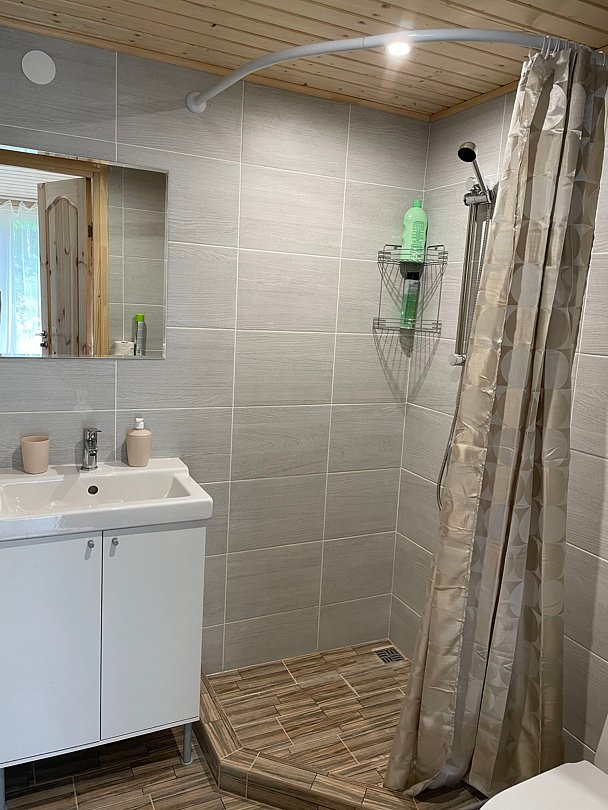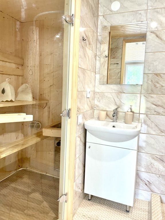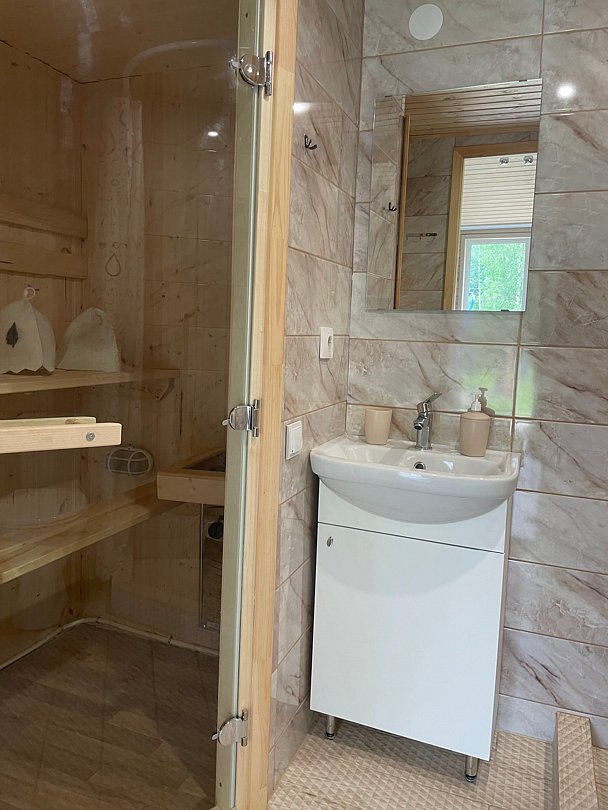 Дом с сауной, которая включена в стоимость, подходит для 5 гостей.
