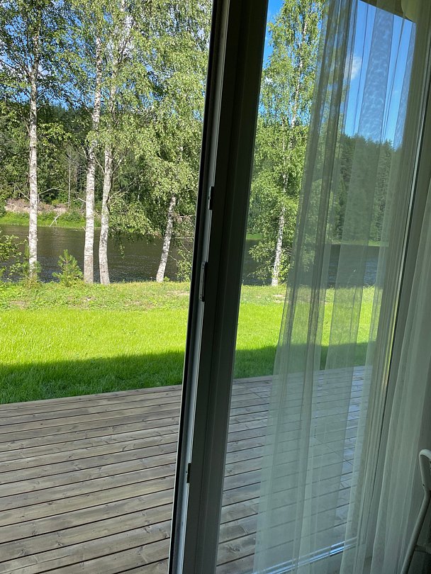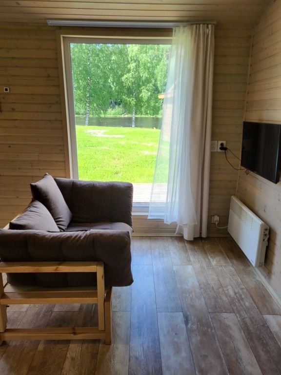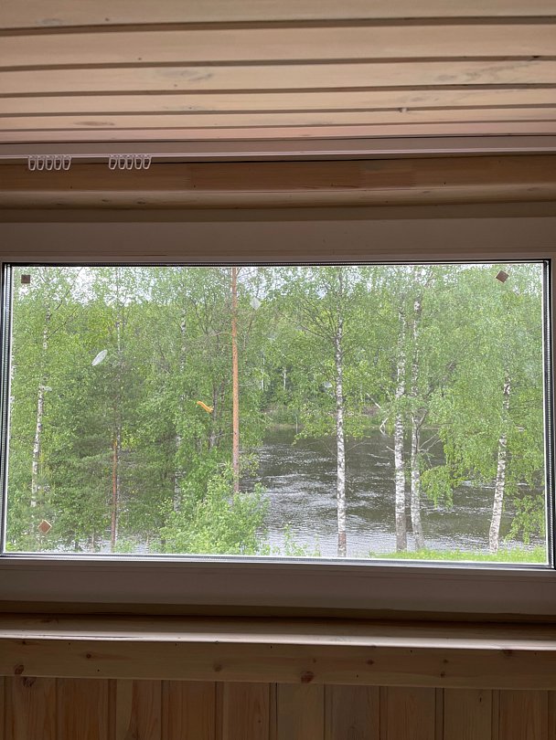 Преимущества дома с сауной номер один: в домике панорамные окна на реку, которая находится в тридцати метрах.