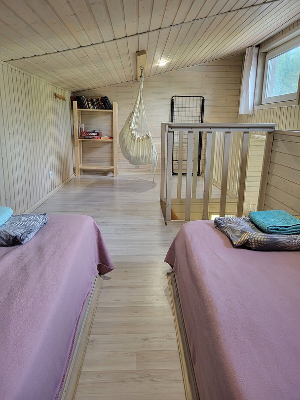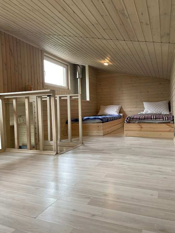 Лестница на антресольный этаж довольно крутая! В стоимость проживания включено посещение бани на дровах, а также обеспечение постельными принадлежностями и полотенцами.