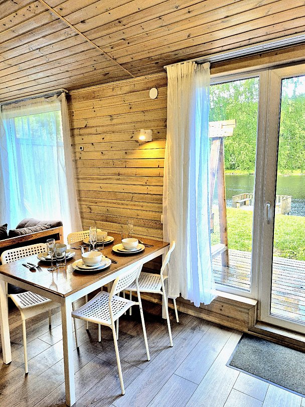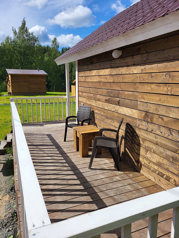 Уютные домики площадью сорок два квадратных метра. Удобное расположение в тридцати километрах от Петрозаводска по трассе «Кола». Рядом живописные берега реки Шуя. Помимо реки, в двухстах метрах есть еще и ламба (лесное озеро).