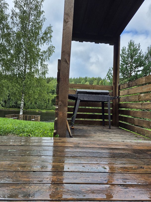 У дома есть своя терраса со стульями, и у каждого дома свой мангал (шампуры предоставляются).