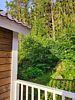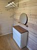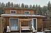 Микро-дом площадью двадцать квадратных метров расположен на второй линии реки Шуя, неподалеку от лесного озера. Основное отличие и преимущество этого домика — банька на дровах, встроенная прямо в дом. Печь топится из зоны гостиной, как камин. Банька занимает четыре квадратных метра.