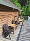 У дома есть своя терраса со стульями, и у каждого дома свой мангал (шампуры прилагаются).