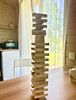 Микро-дом площадью двадцать квадратных метров расположен на второй линии реки Шуя, рядом с лесным озером. Основное отличие и преимущество этого дома — баня на дровах, которая находится прямо внутри. Печь можно растопить из гостиной, как камин.
