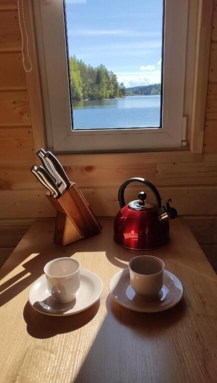 Дом стоит в отдалении от других гостевых домов, не подключен к электричеству, что придает романтики, доставка к дому осуществляется на катере - доставка входит в стоимость. Для приготовления пищи оборудованная кухня, газовая плита. В раковине Ладожская вода - подается автоматически.