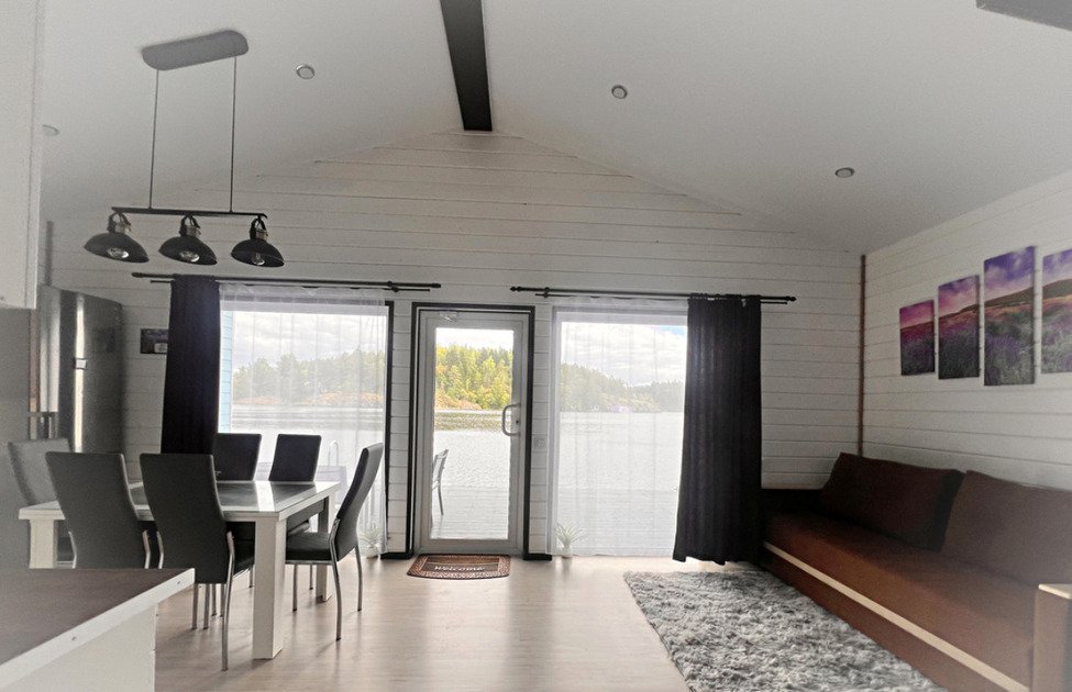 Один из самых больших плавучих домов в Карелии! Для любителей полного уединения с природой в атмосфере комфорта, без соседей и шума! Постройка июнь 2021. Расположен прямо в шхерах Ладожского озера с панорамным видом и окнами на скалы! Очень красивая бухта, полностью располагающая к рыбалке. Рядом хвойный лес (много ягод и грибов). Вокруг нет соседей — только вы, Ладога, скалы и лес!