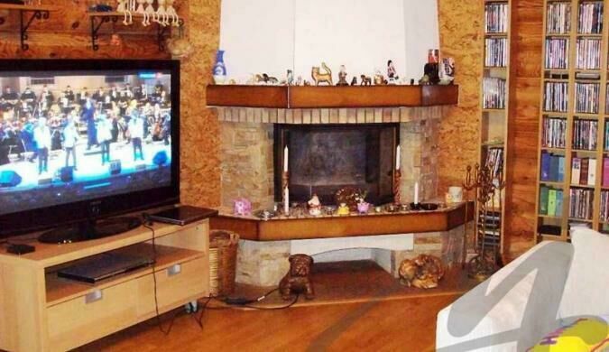 Рассчитан на 8 человек. На первом этаже располагается гостиная с камином, огромный стол для проведения трапез, окруженный всевозможными лавками и креслами ручной работы.